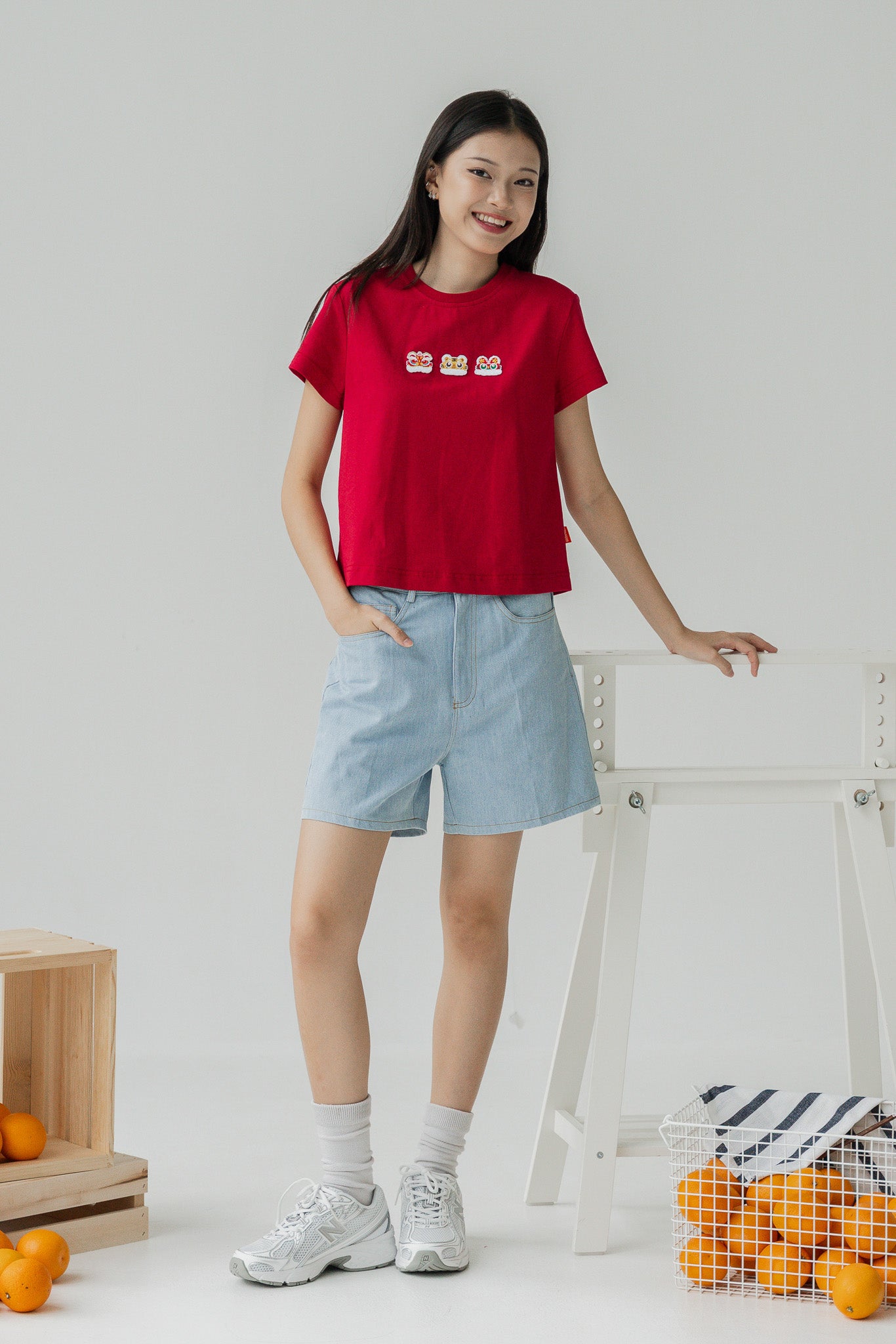 Lucky Lion Women's Tee in Red