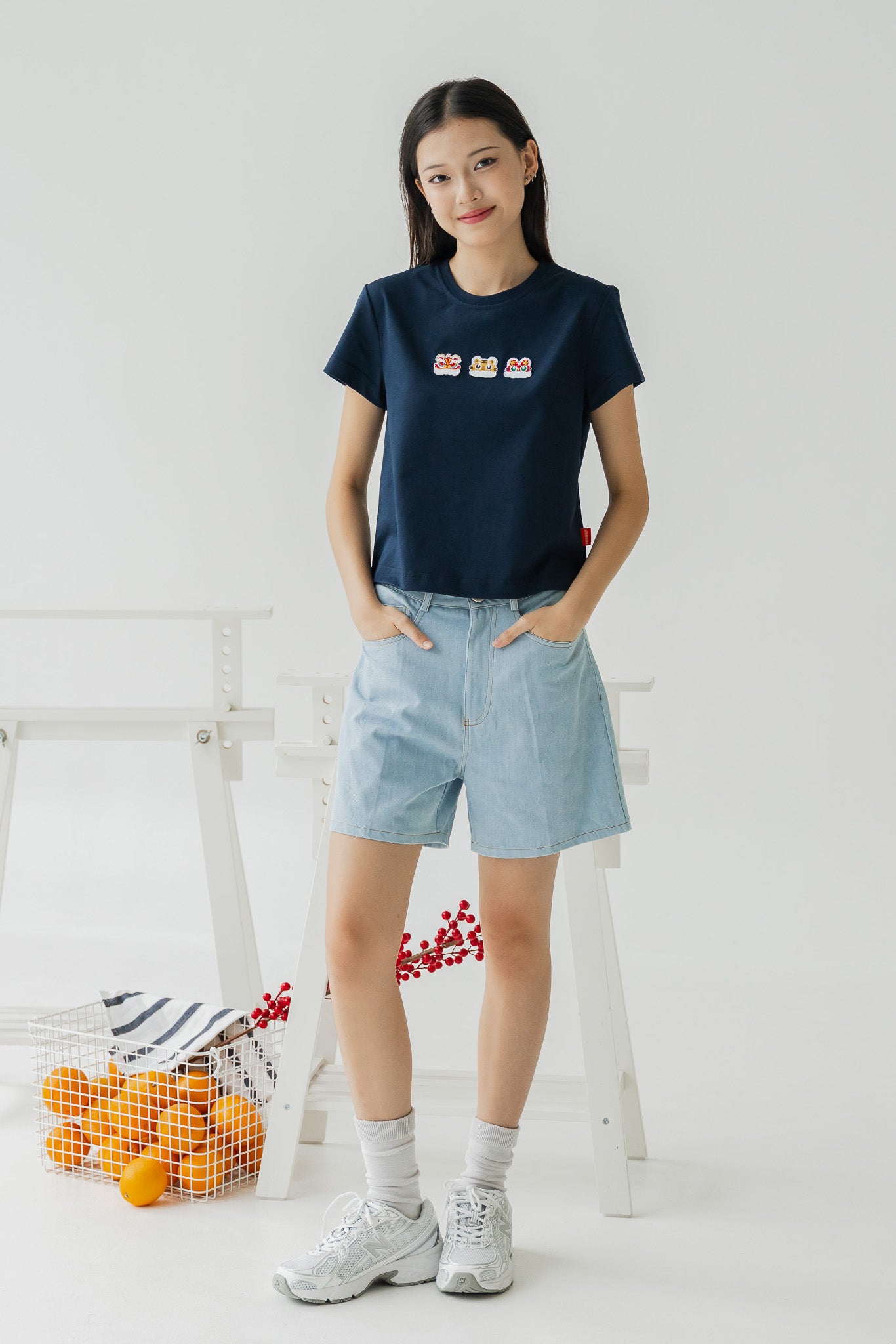 Lucky Lion Women's Tee in Navy