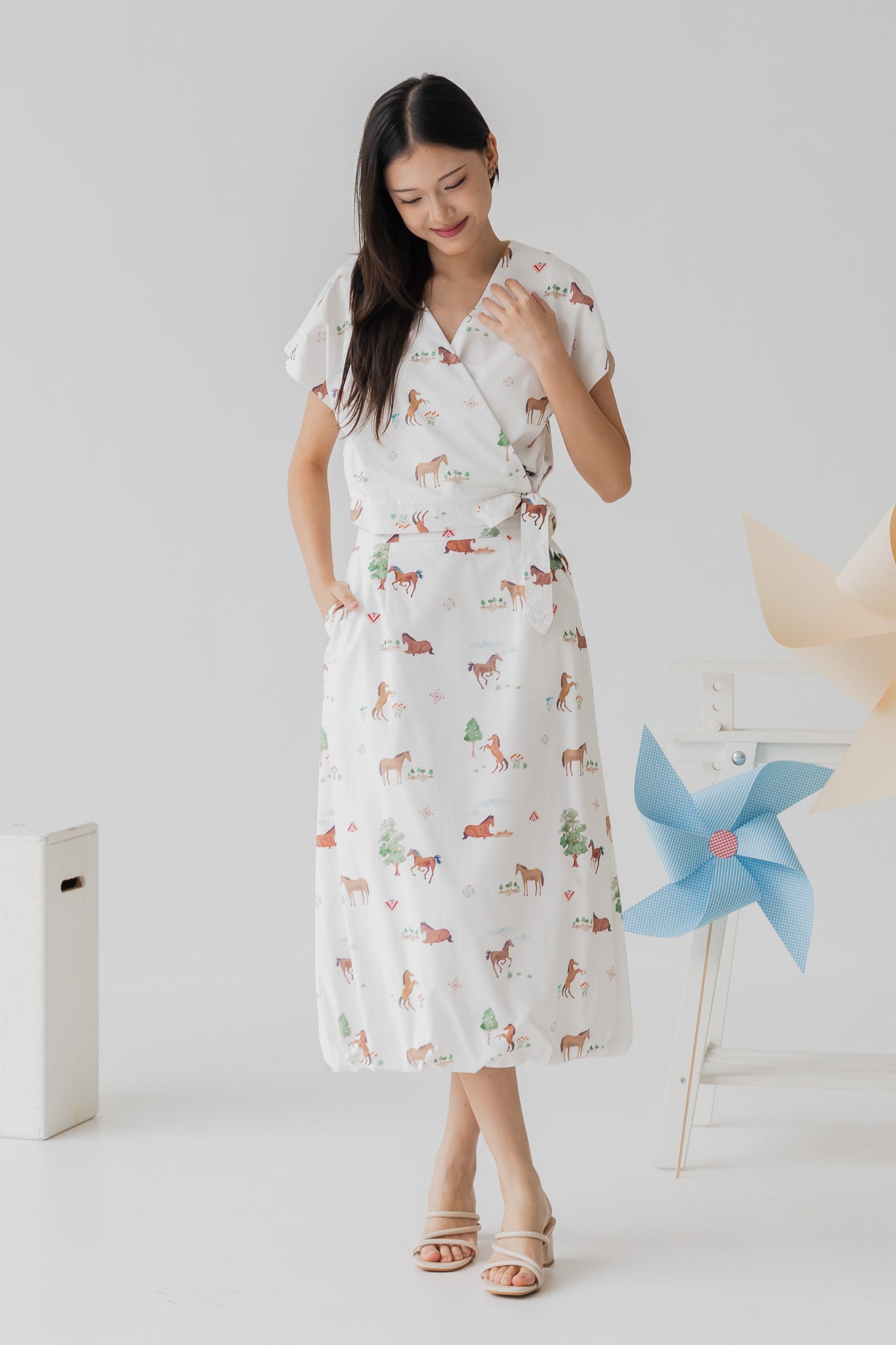 Fields of Gold Asym Side Knots Dress in Bloom
