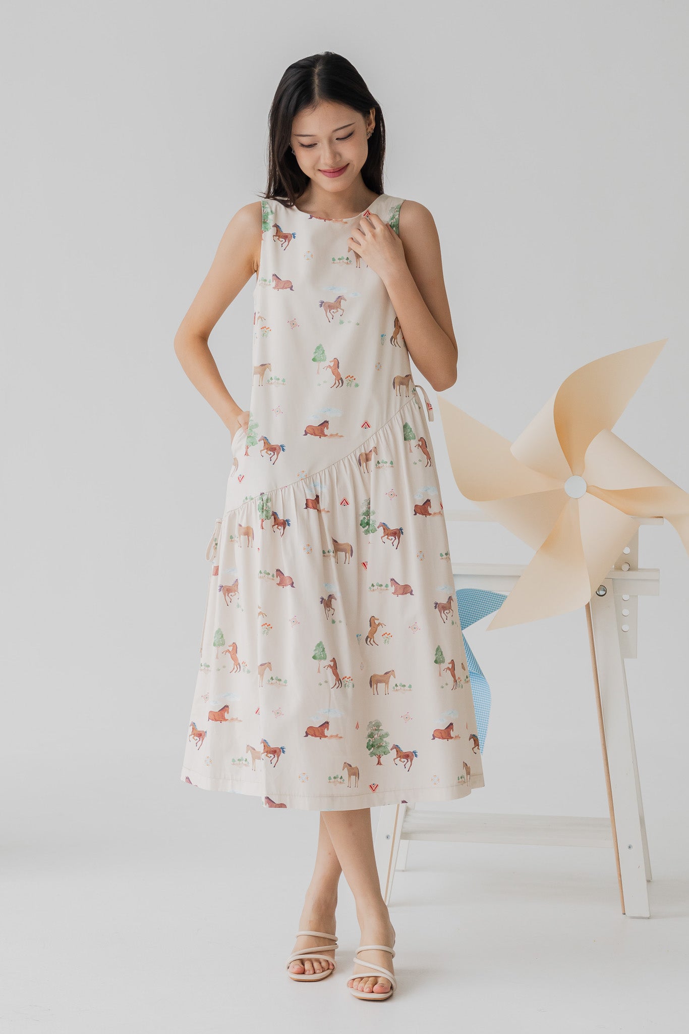 Fields of Gold Asym Side Knots Dress in Bloom