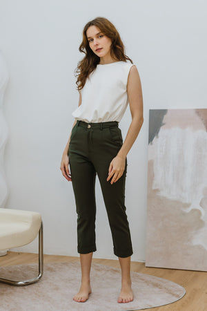 Other features: Cropped length, folded cuff detail