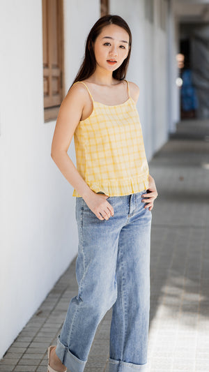- Made with a checked cotton material