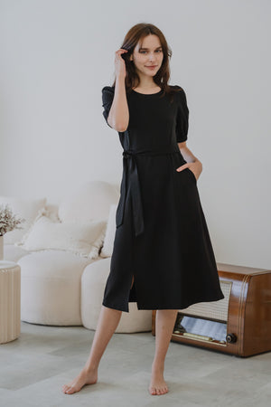 Claire Panelled Jersey Sleeved Dress in Black [ONLINE ONLY]