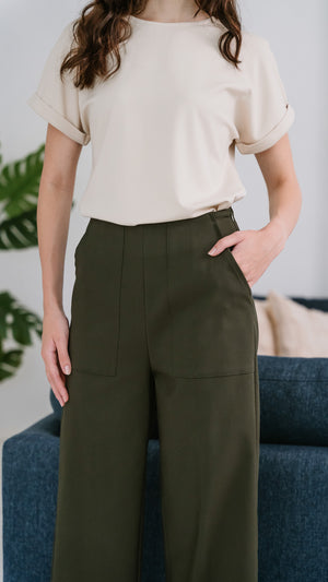 Core Essentials Broad Pants in Army Green [ONLINE ONLY]