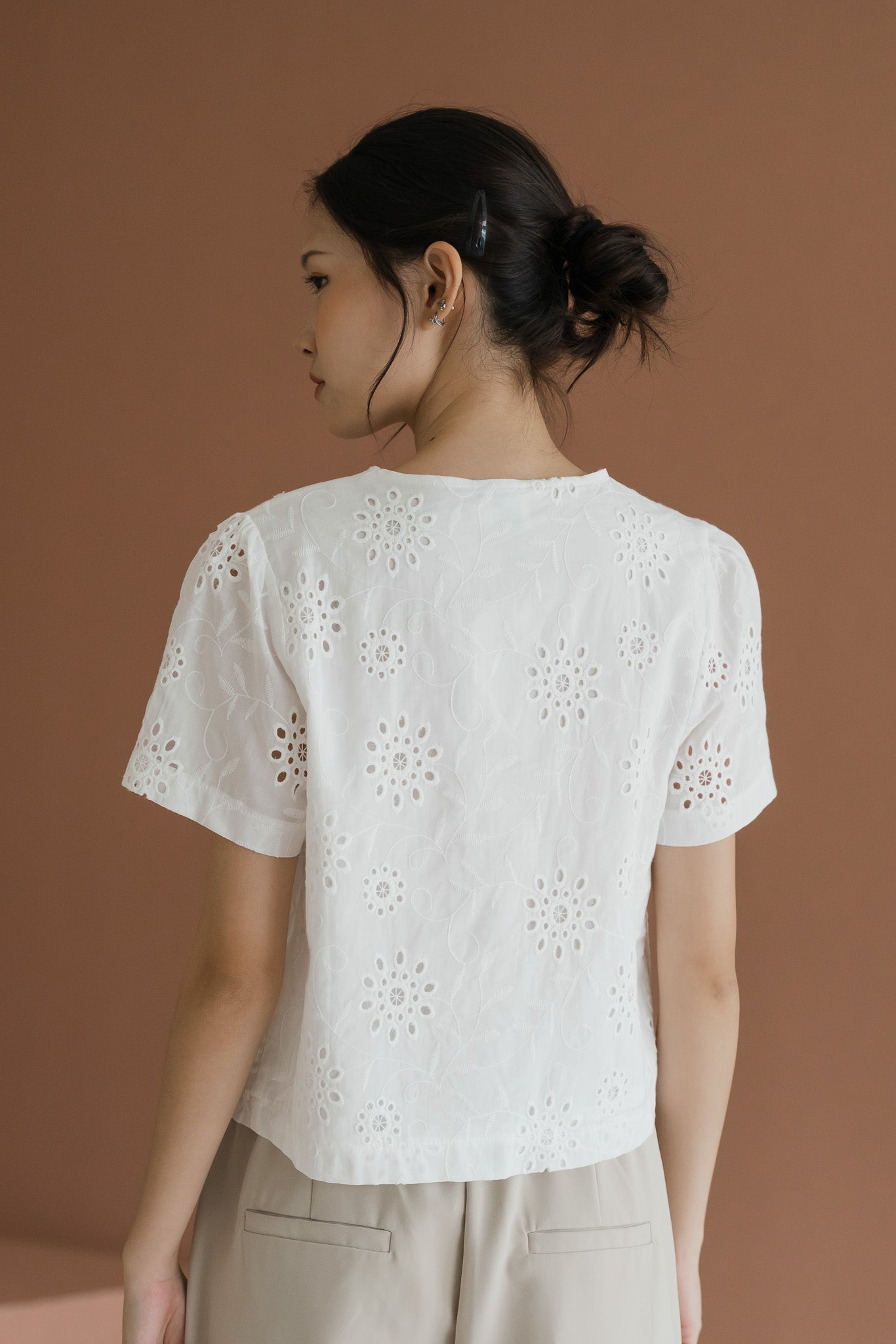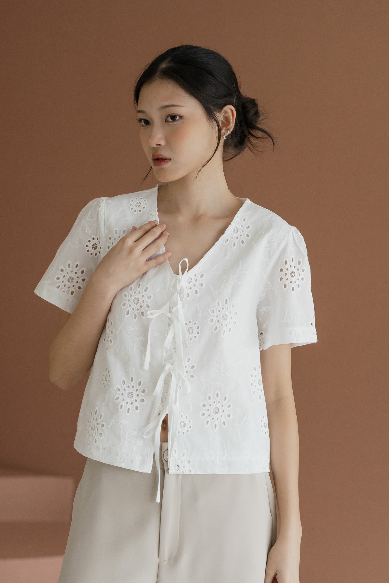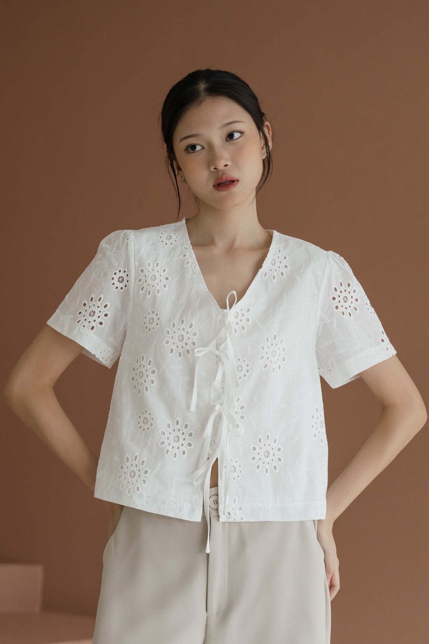 Material: Cotton BroderieLining: Fully lined at the bodice and not sheerOpening: Snap buttons on the frontOther features: Ribbon lace details on the frontColours: Light Green and WhiteMeasurements (in inches)Model is 168cm, UK 4-6 and wears size S