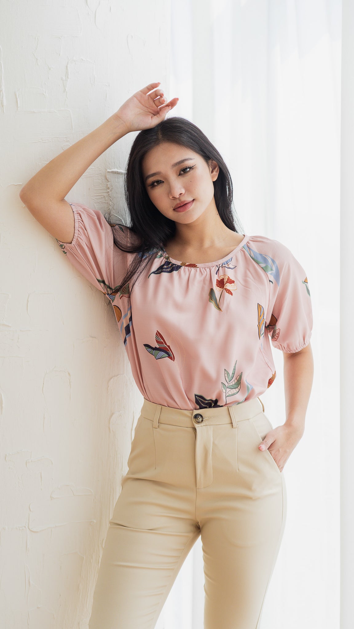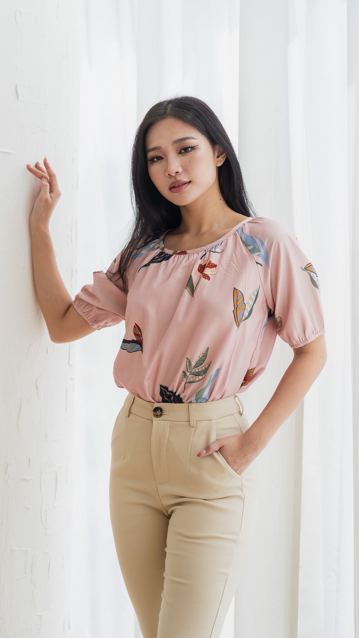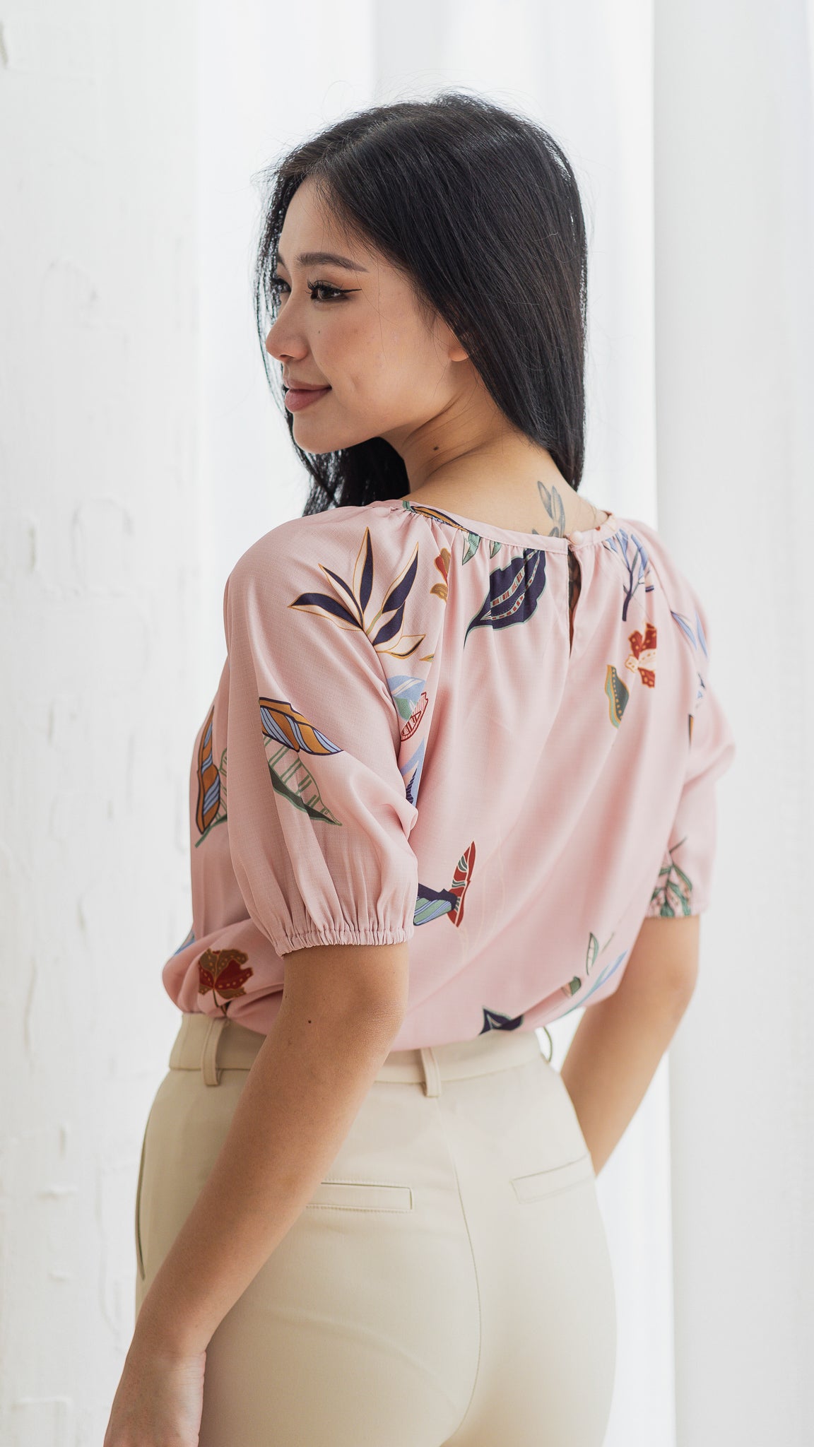 Don't Stop BeLEAFing Sleeved Blouse in Pink [ONLINE ONLY]