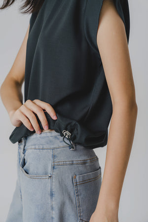 Drawstring Hem Cap Sleeve Blouse in Forest