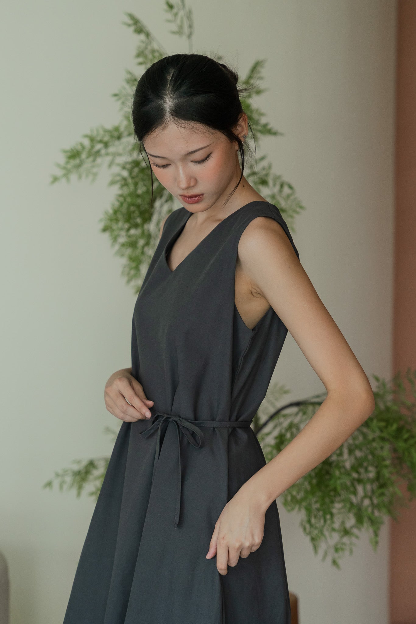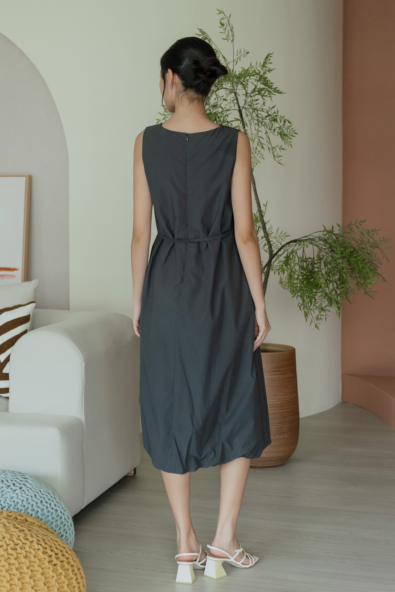 Material: Cotton & polyester blendLining: Fully lined and not sheerOpening: Concealed zip on the backPockets: Functional pockets on the sidesOther features: Comes with detachable sashColours: Charcoal and Light BlueMeasurements (in inches)Model is 168cm, UK 4-6 and wears size S