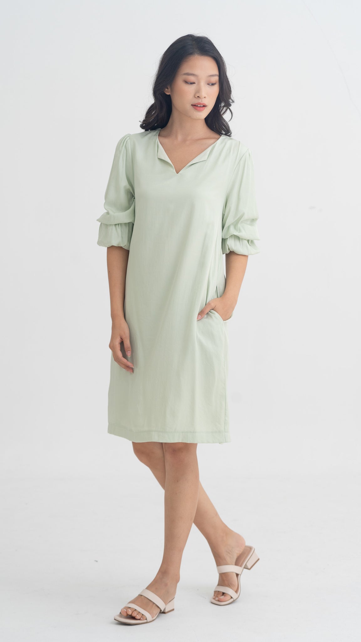 Emille Layered Sleeve Dress in Light Green [ONLINE ONLY]