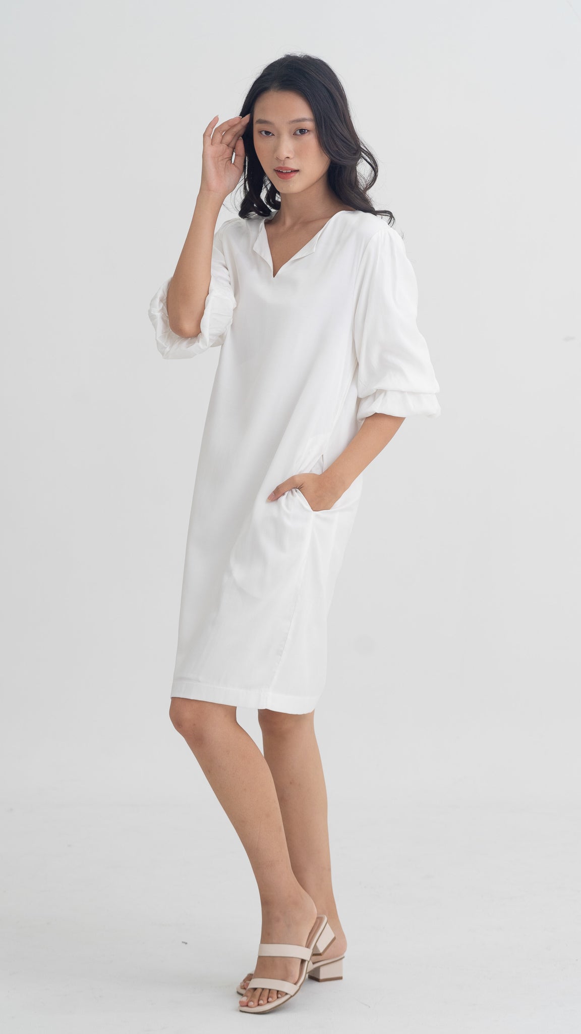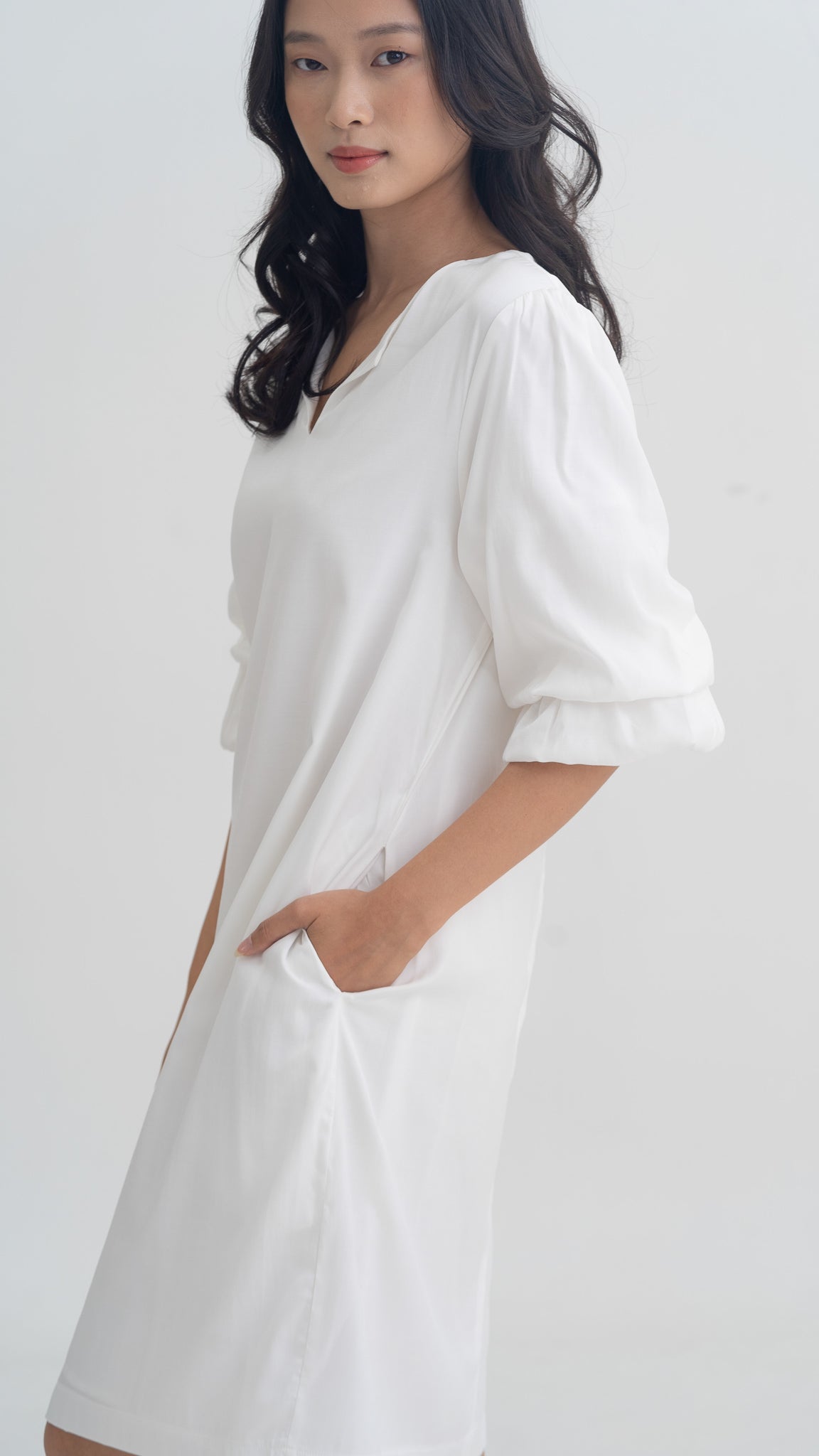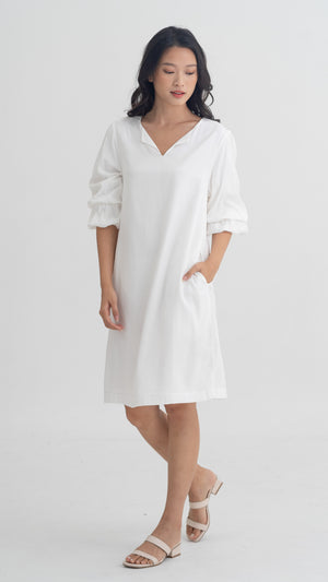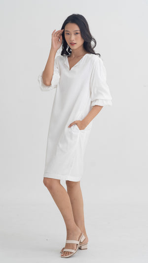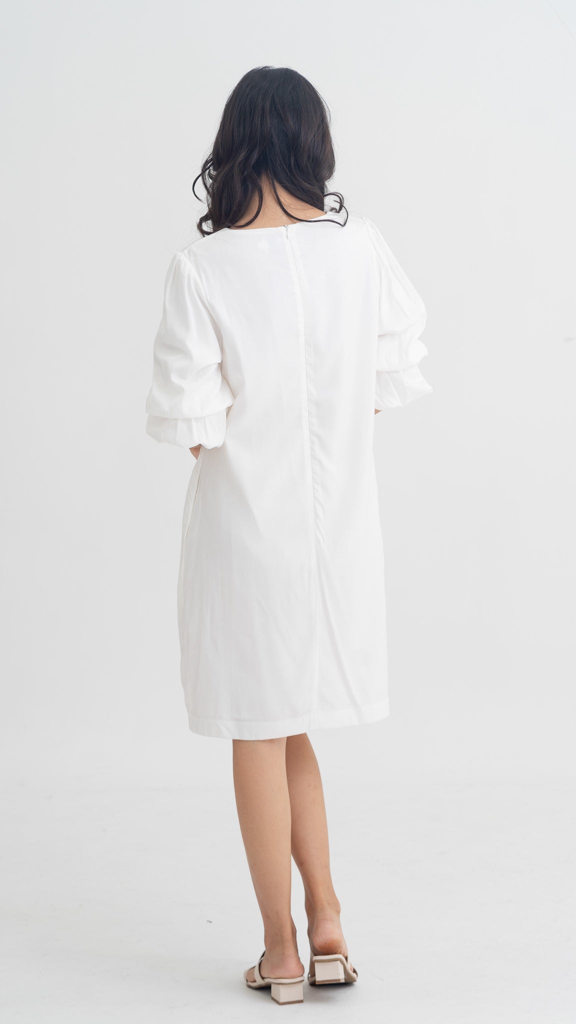 Emille Layered Sleeve Dress in White [ONLINE ONLY]