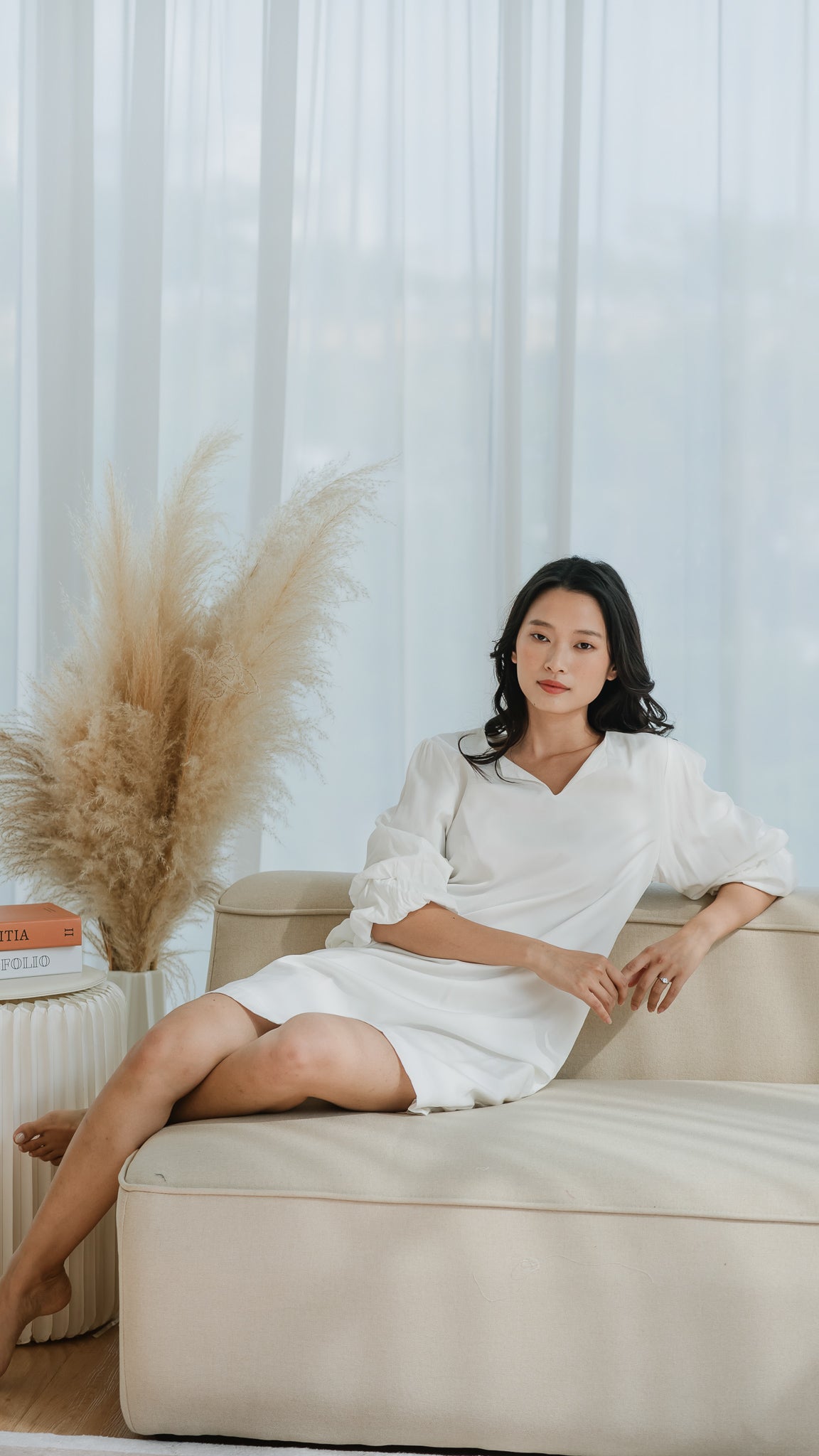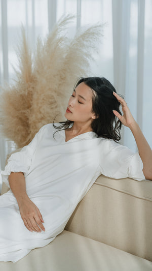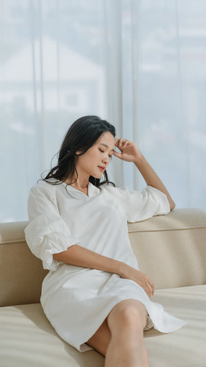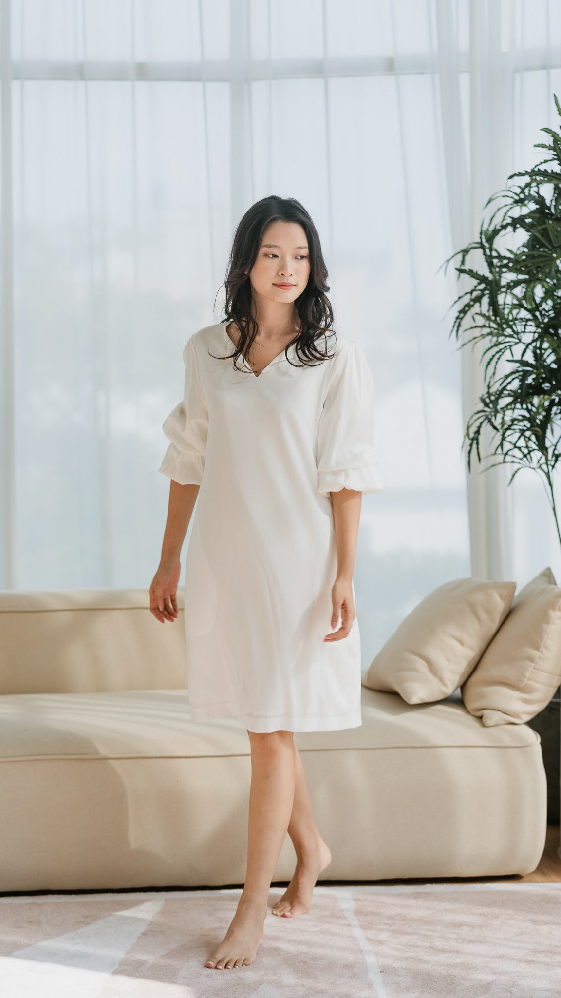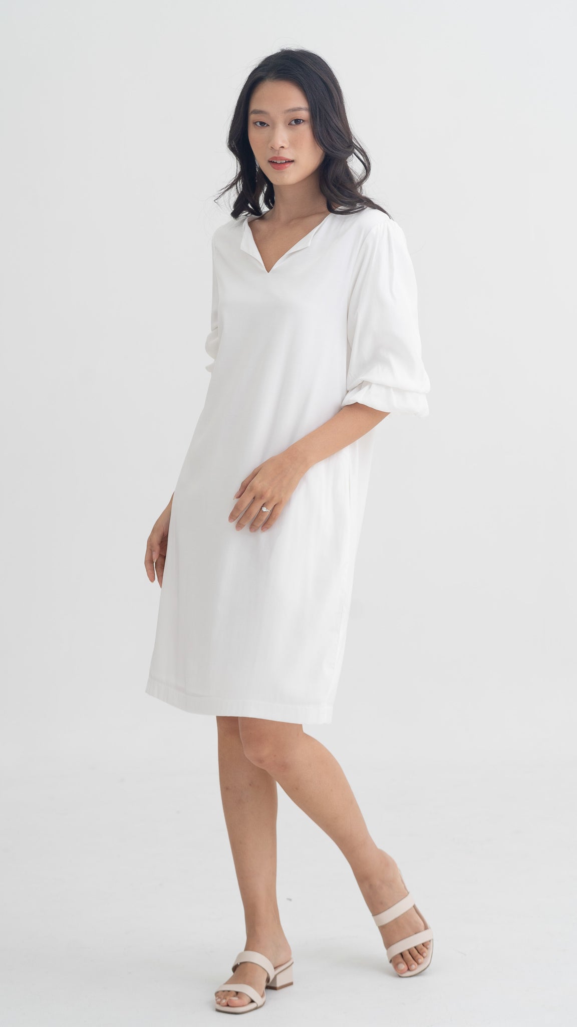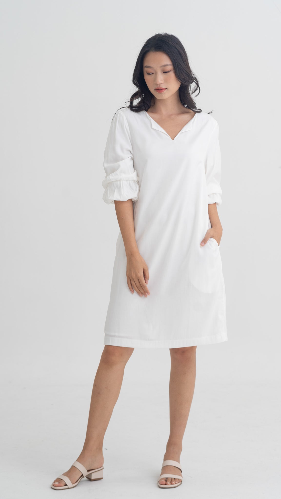 Emille Layered Sleeve Dress in White [ONLINE ONLY]
