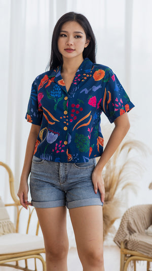 Fruit For Thought Camp Collar Shirt in Blue [ONLINE ONLY]