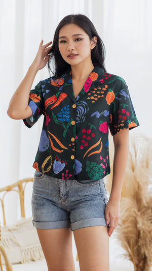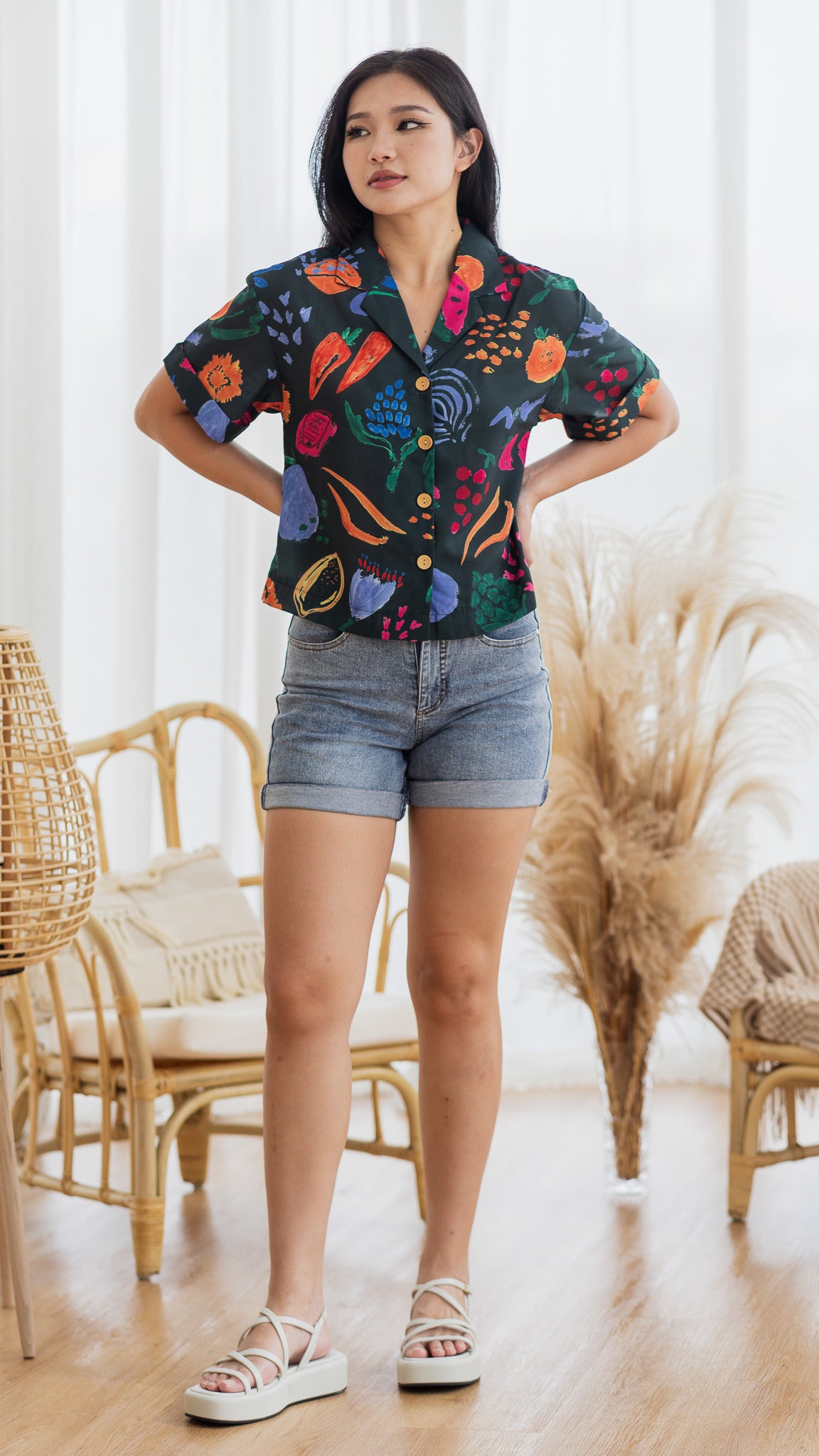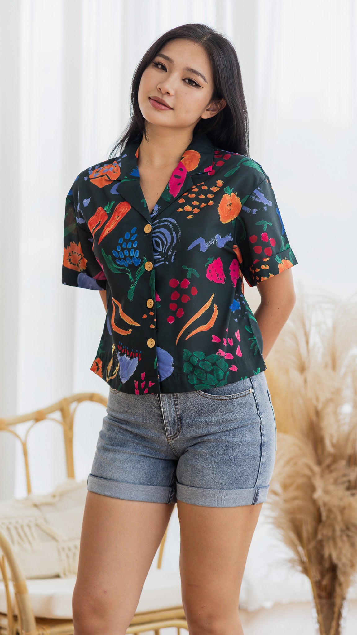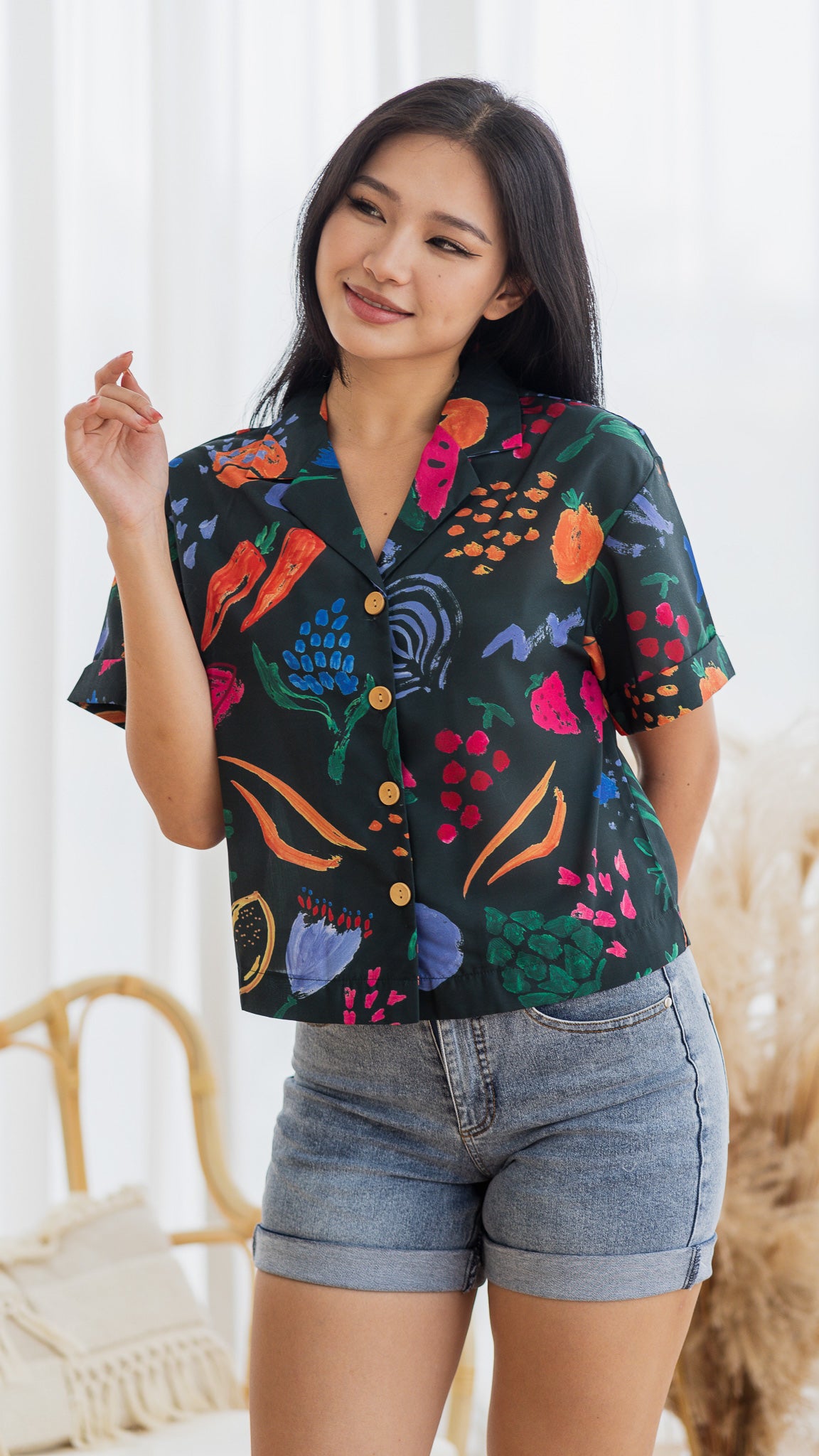 Featuring our exclusive in-house print design, created with bold hand-painted motifs with a fruity theme, in a festive palette