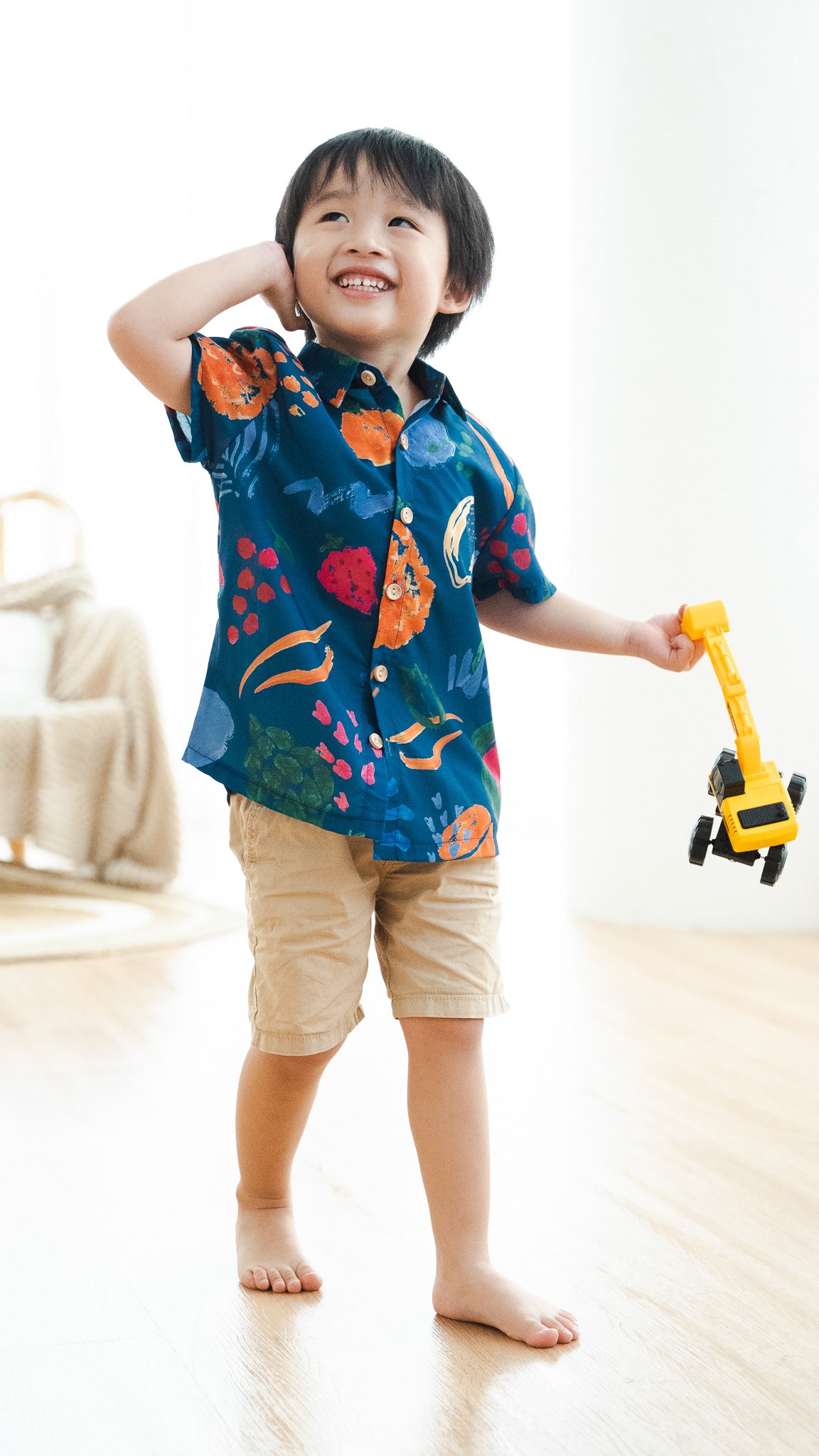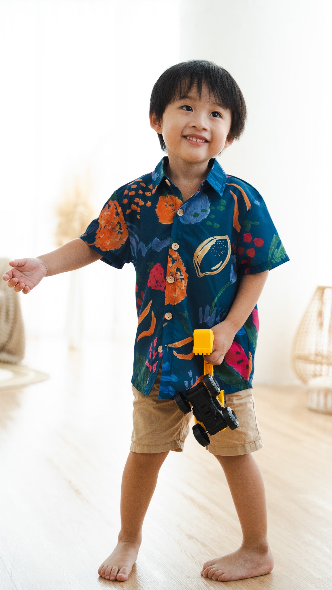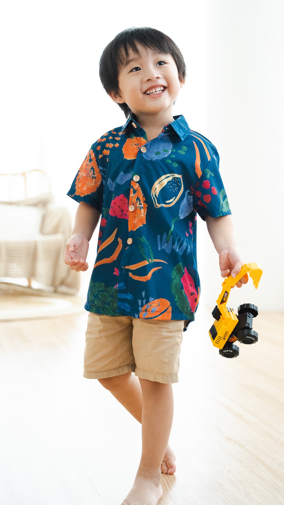Featuring our exclusive in-house print design, created with bold hand-painted motifs with a fruity theme, in a festive palette