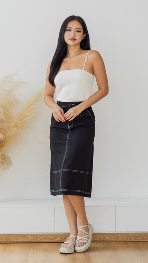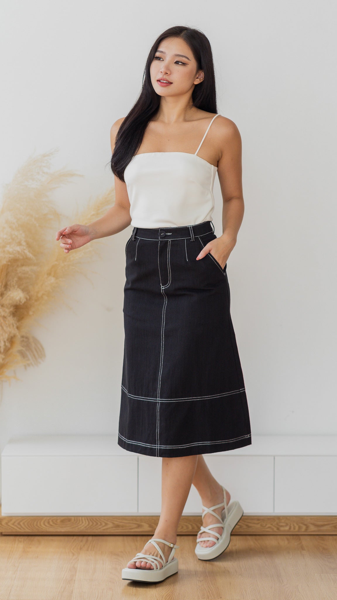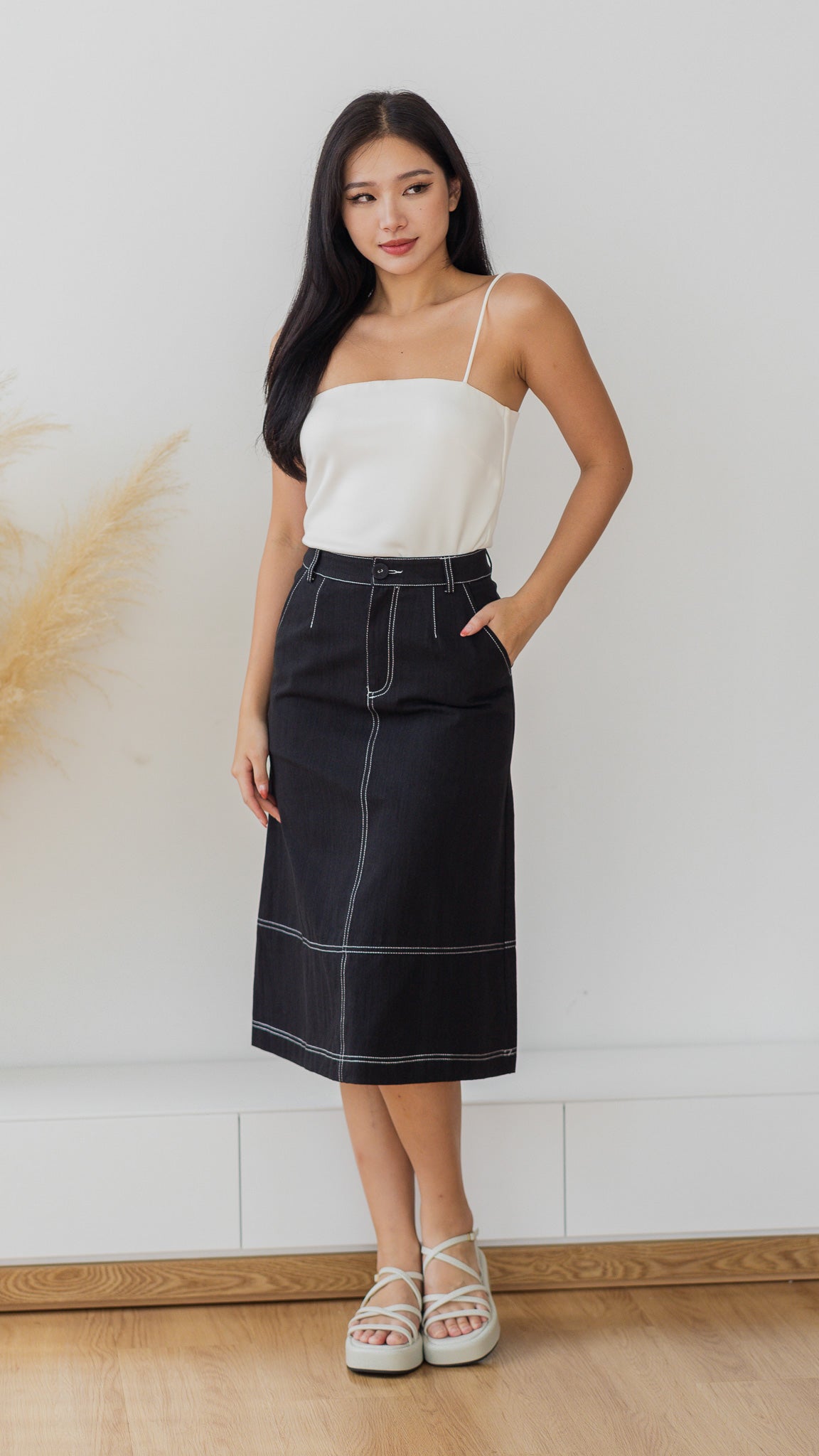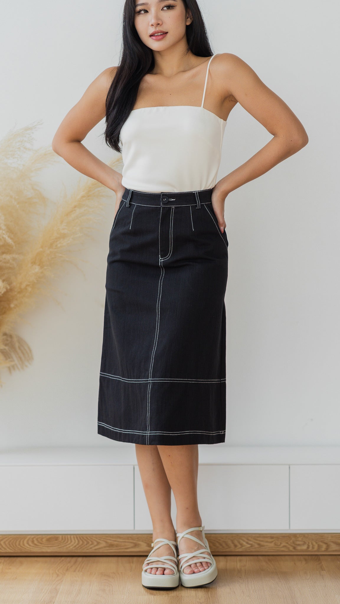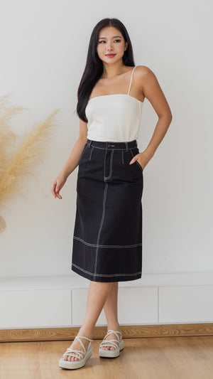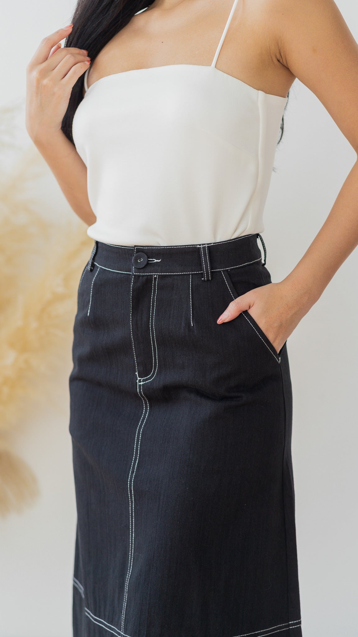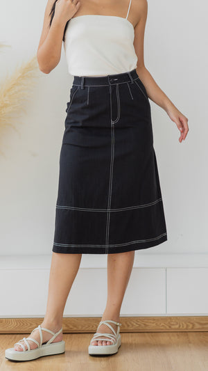 Havana Contrast Stitch Midi Skirt in Black [ONLINE ONLY]