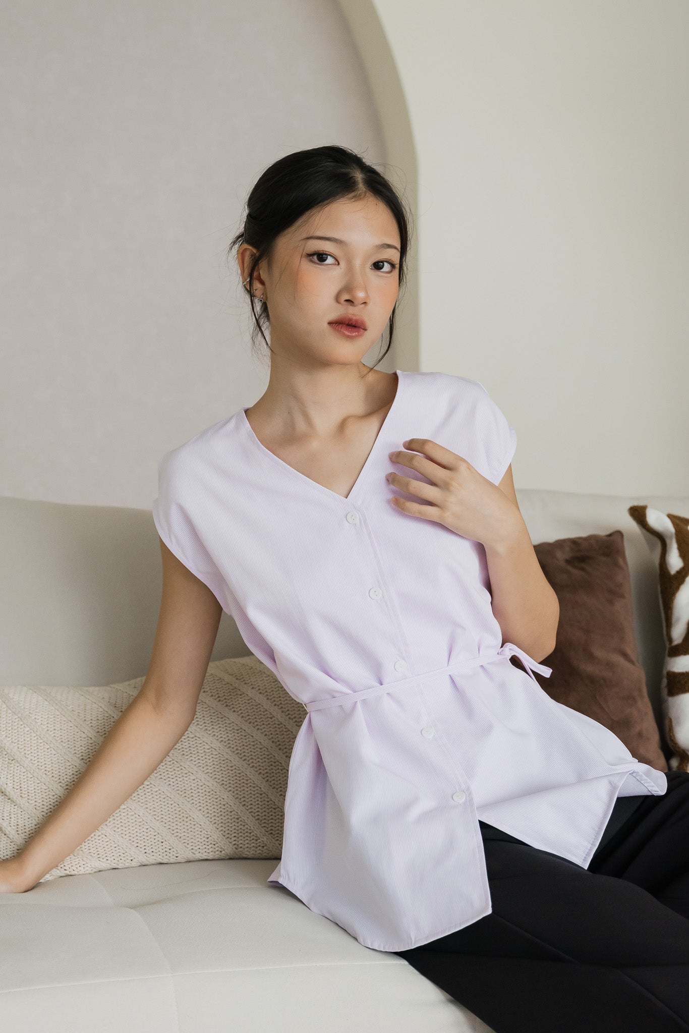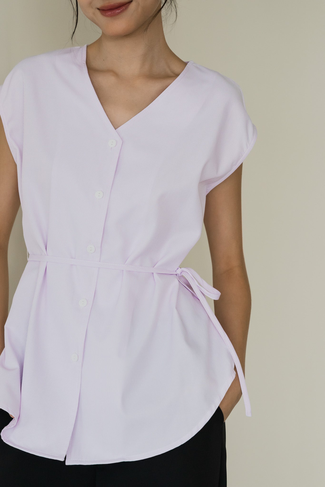 Material: Cotton & polyester blendLining: Not lined and not sheerOpening: Buttons on the frontOther features: Comes with detachable sashColours: Orchid and Light BlueMeasurements (in inches)Model is 168cm, UK 4-6 and wears size S*Item is designed for an oversized fit. Recommended to stick to your regular size