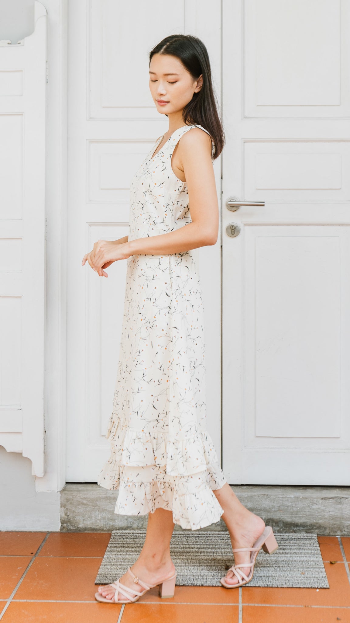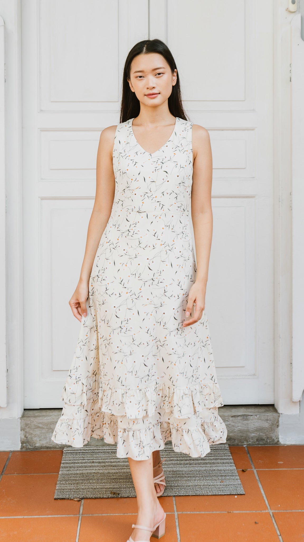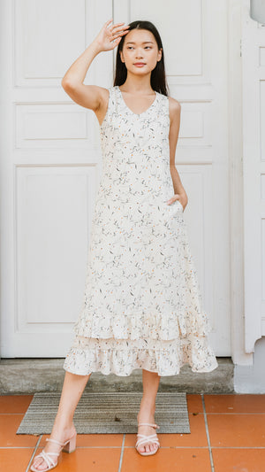 Hope Frill Hem Dress in Beige [ONLINE ONLY]