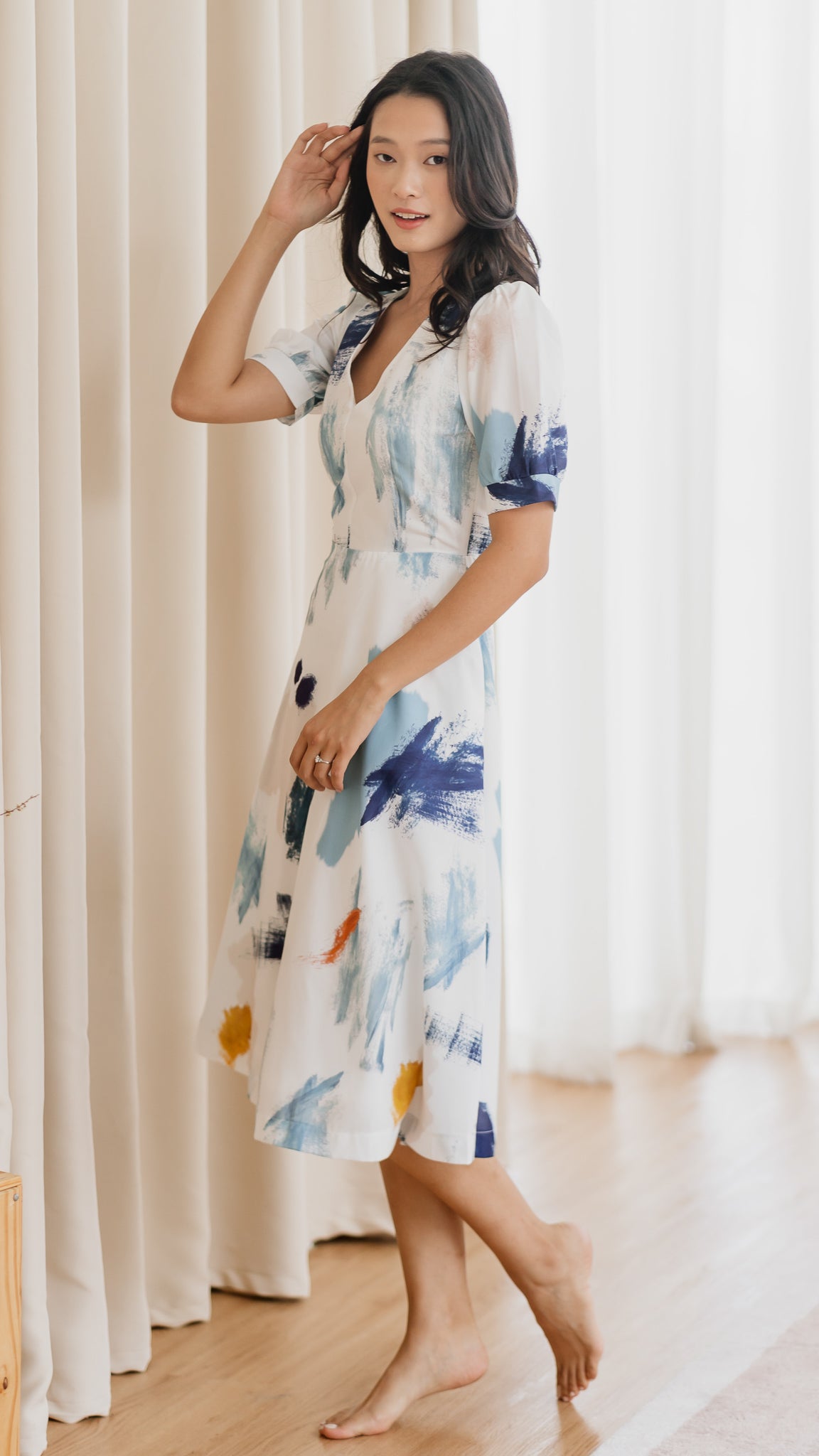 Featuring our exclusive in-house print design, created with hand-painted brush stroke motifs