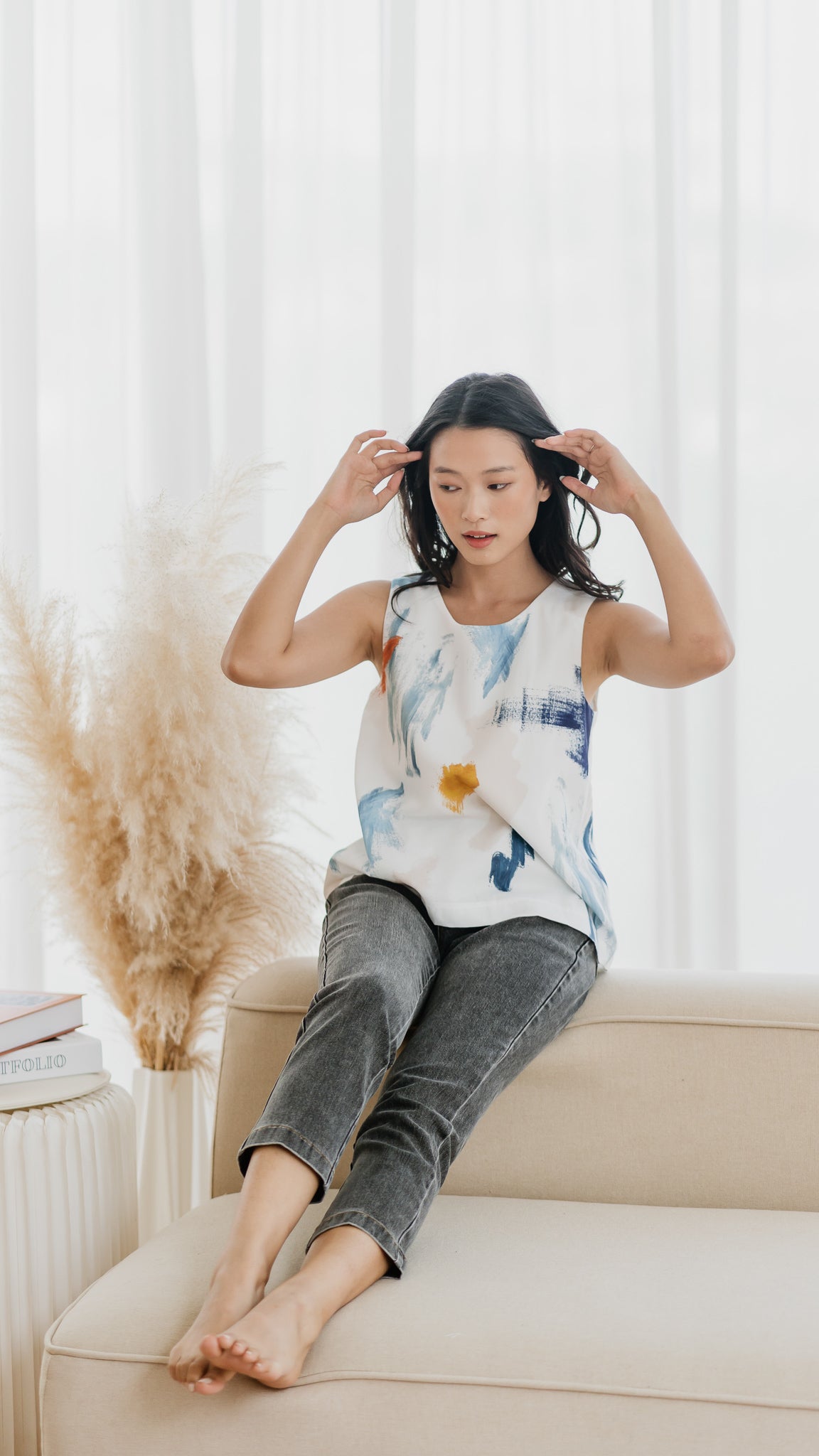 Featuring our exclusive in-house print design, created with hand-painted brush stroke motifs