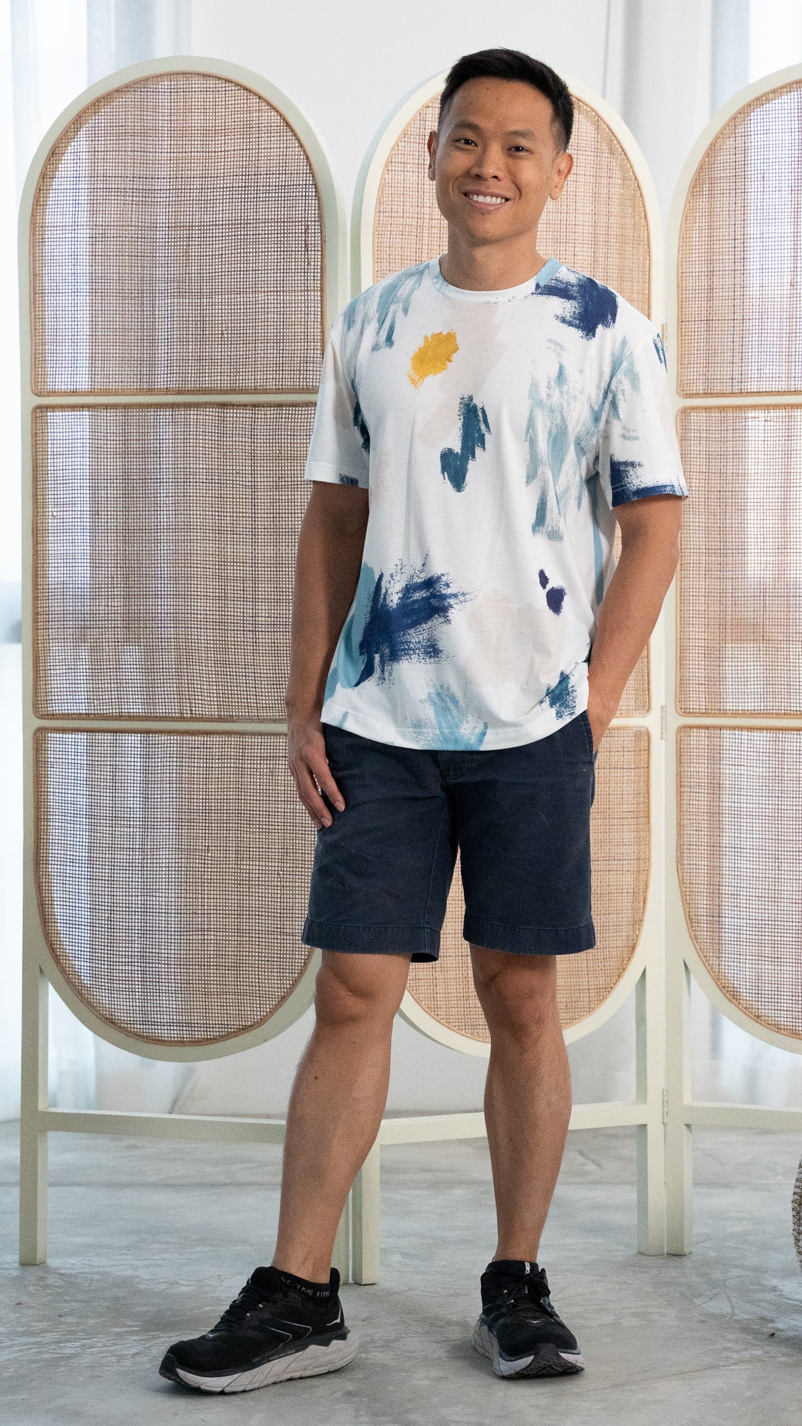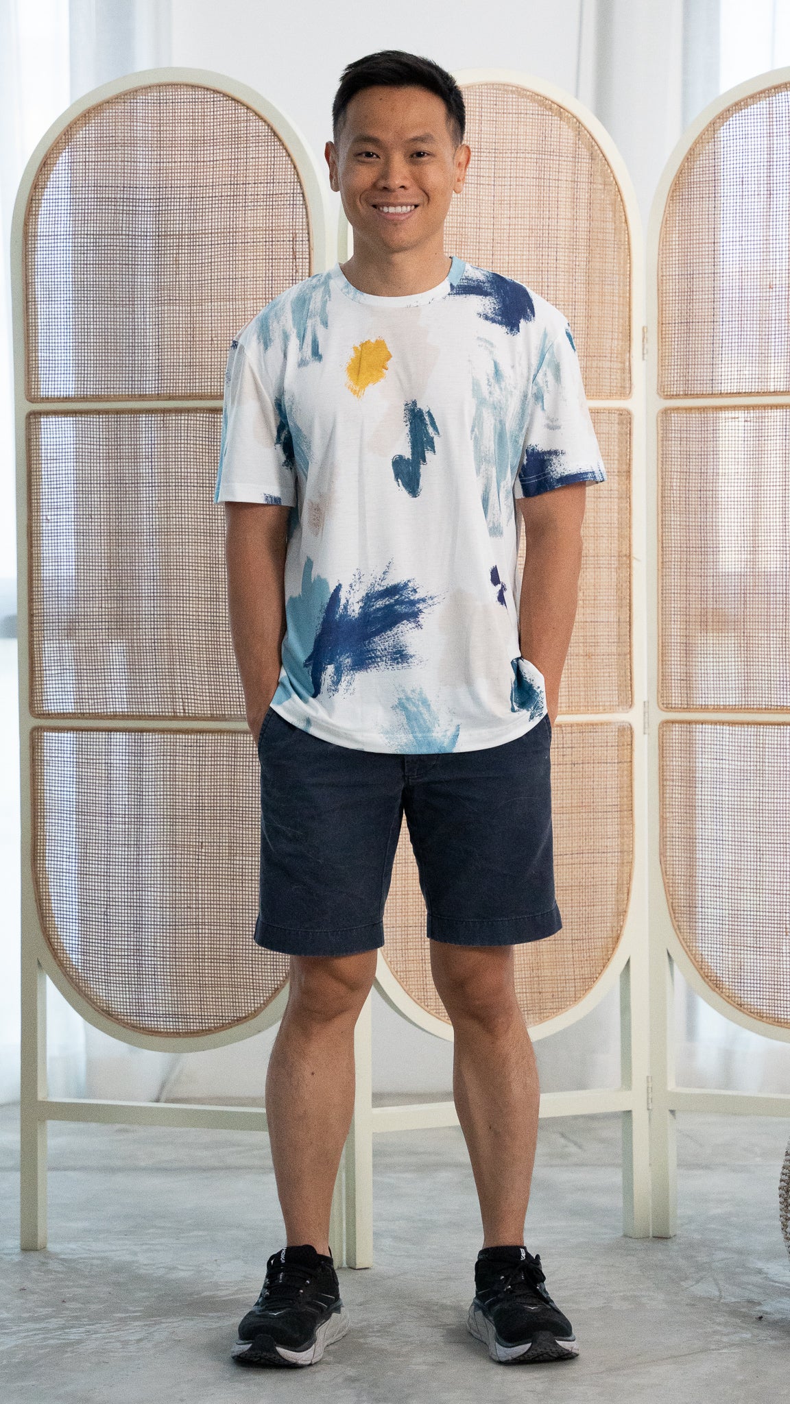 Featuring our exclusive in-house print design, created with hand-painted brush stroke motifs