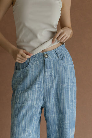 Material: Textured Jacquard DenimLining: Not lined and not sheerOpening: Front button and zip opening with elasticised waist band on the backPockets: Functional pockets on the sides and backColours: One Colour OnlyMeasurements (in inches)Model is 168cm, UK 4-6 and wears size XS
