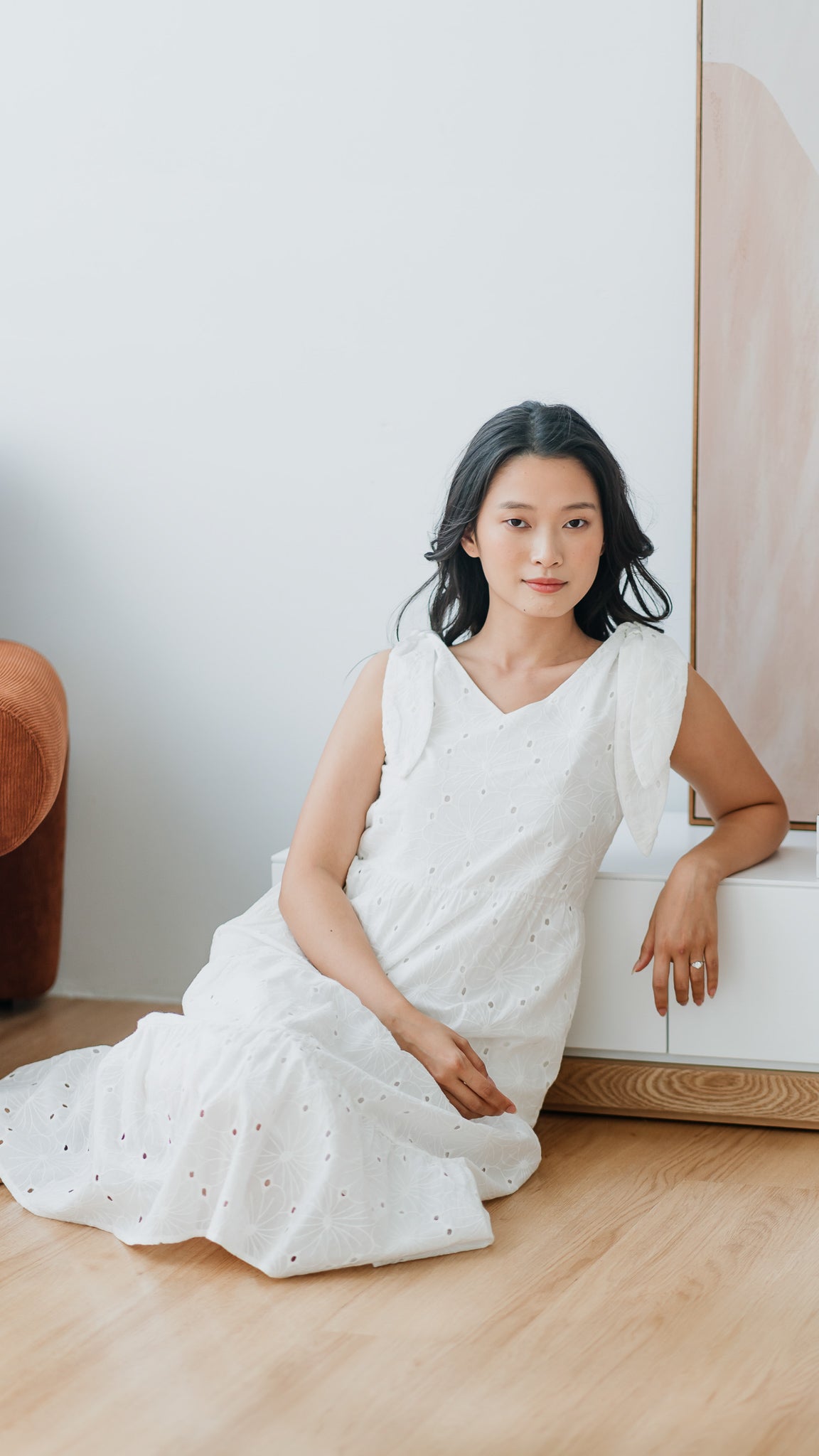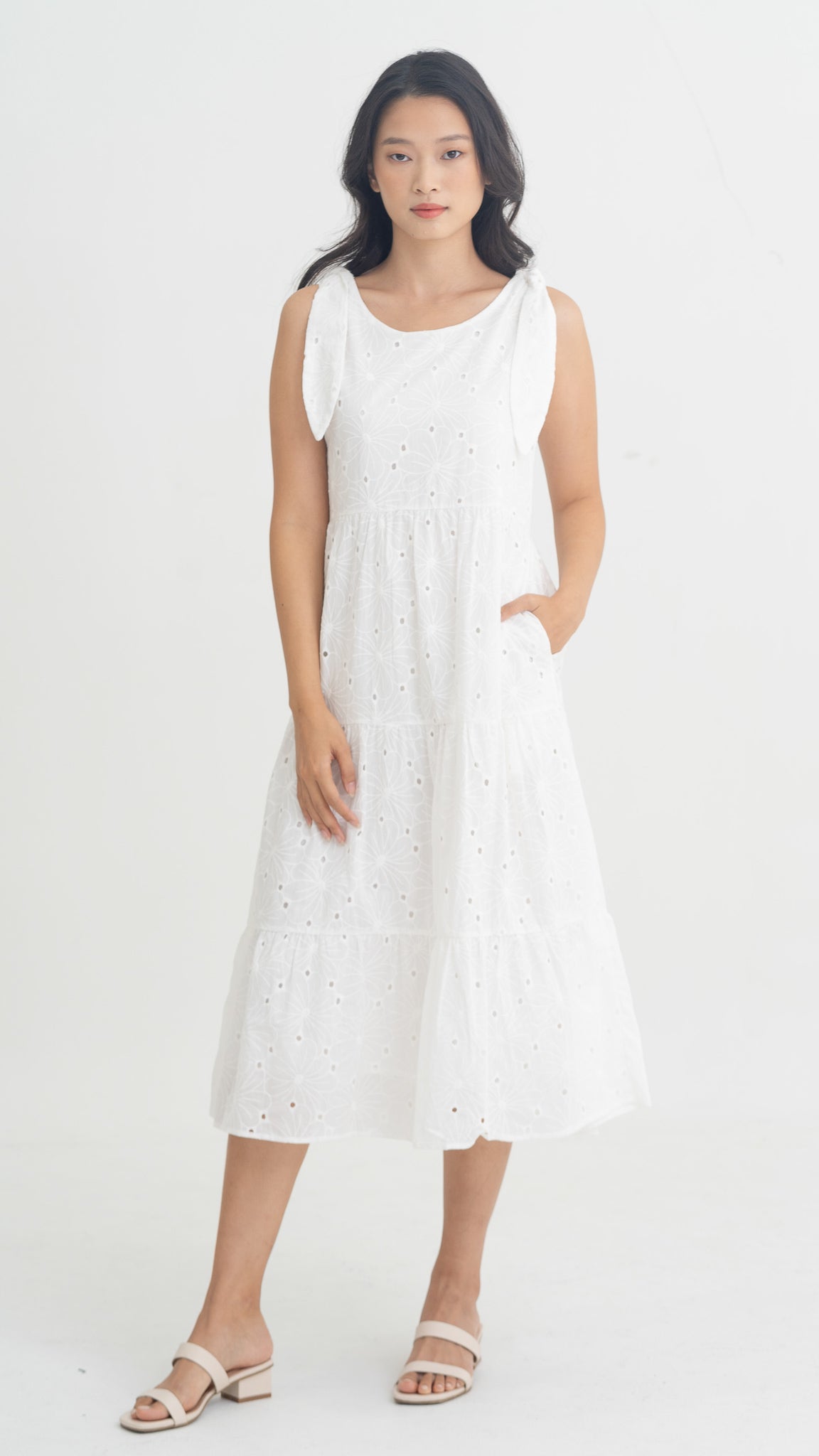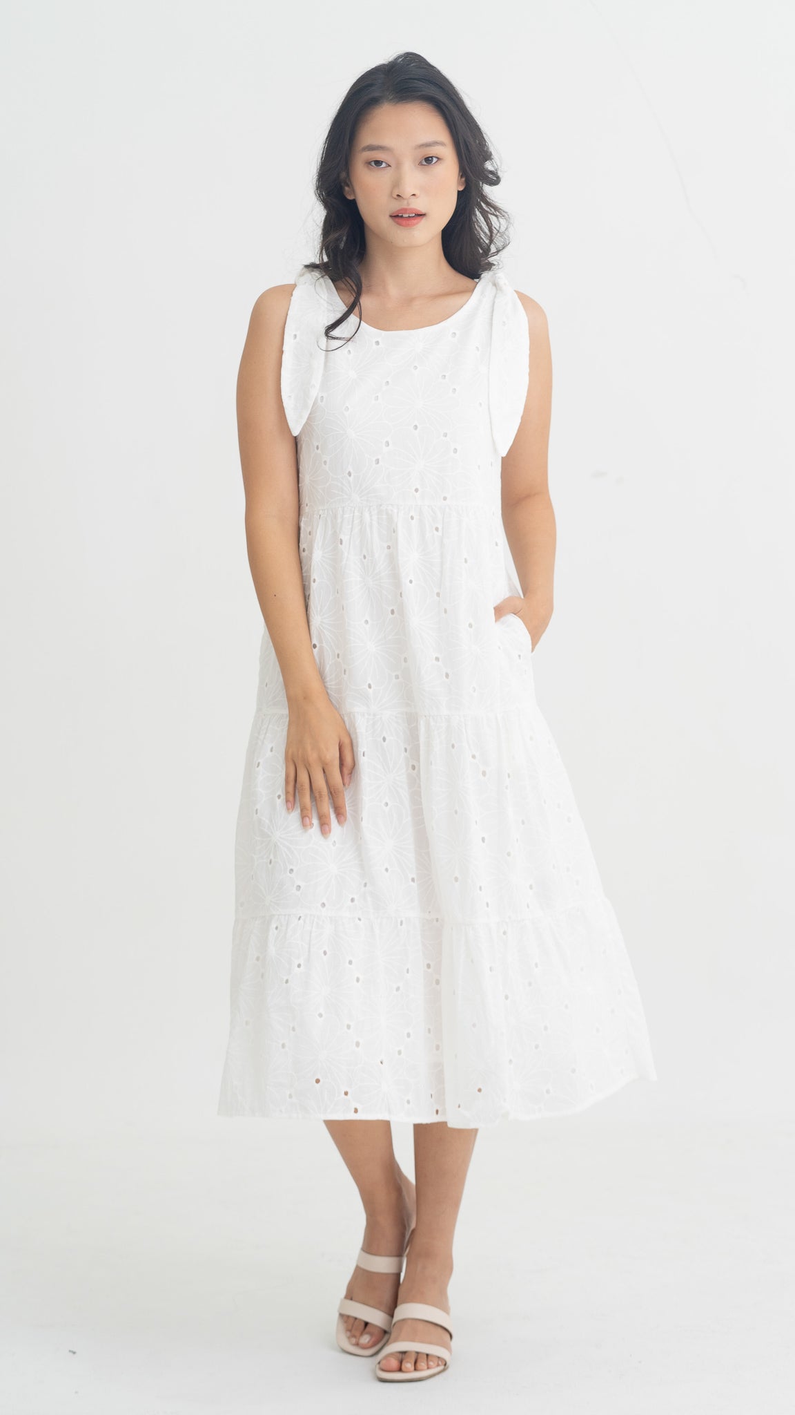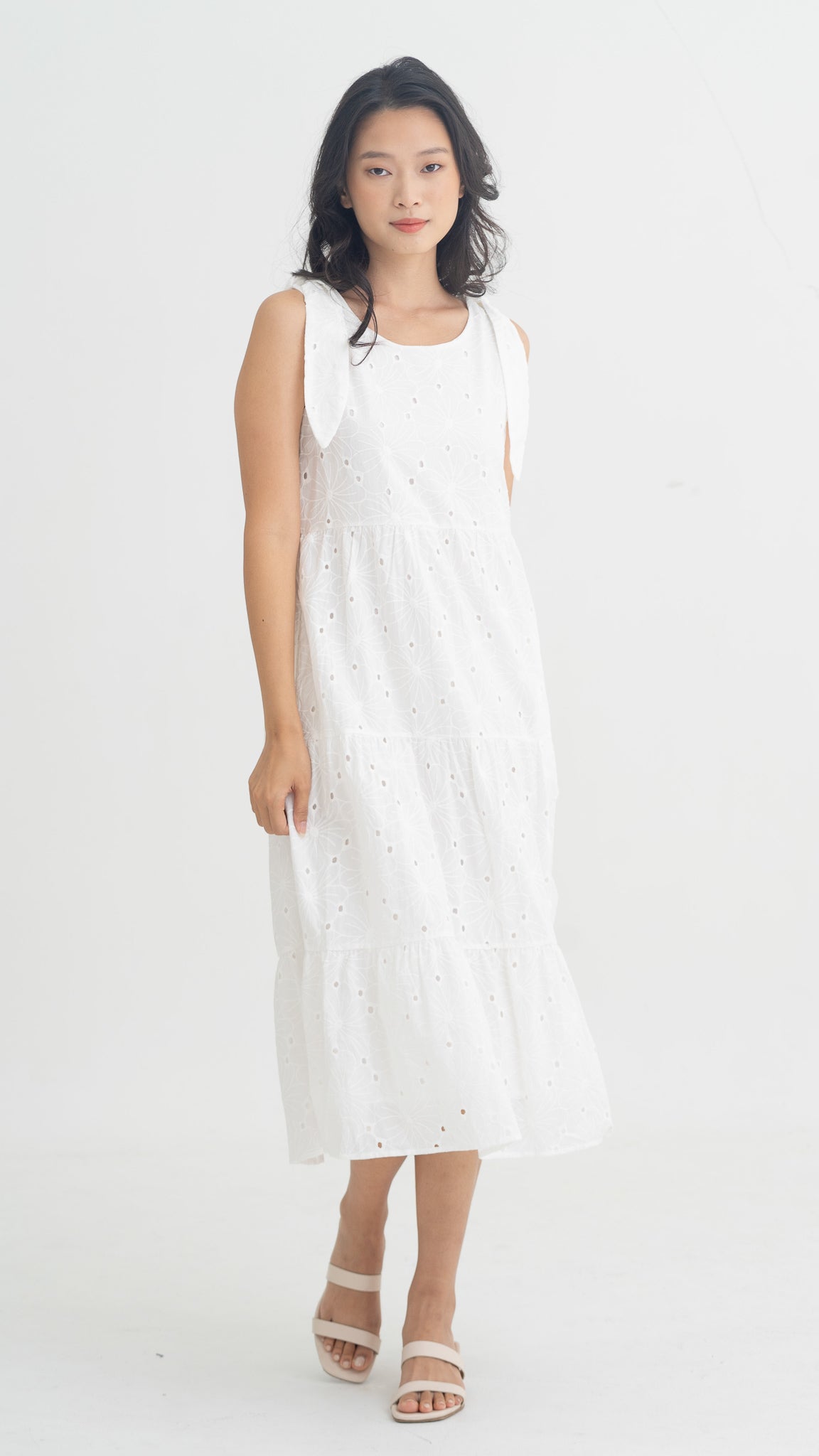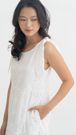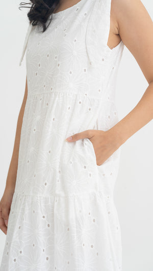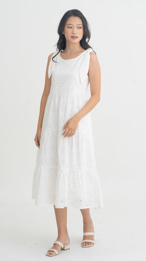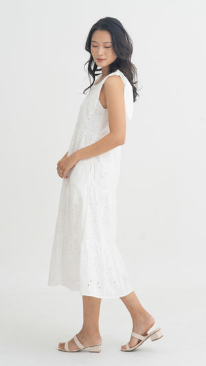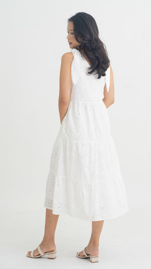 Jemma Broderie Tiered Midi Dress in White [ONLINE ONLY]