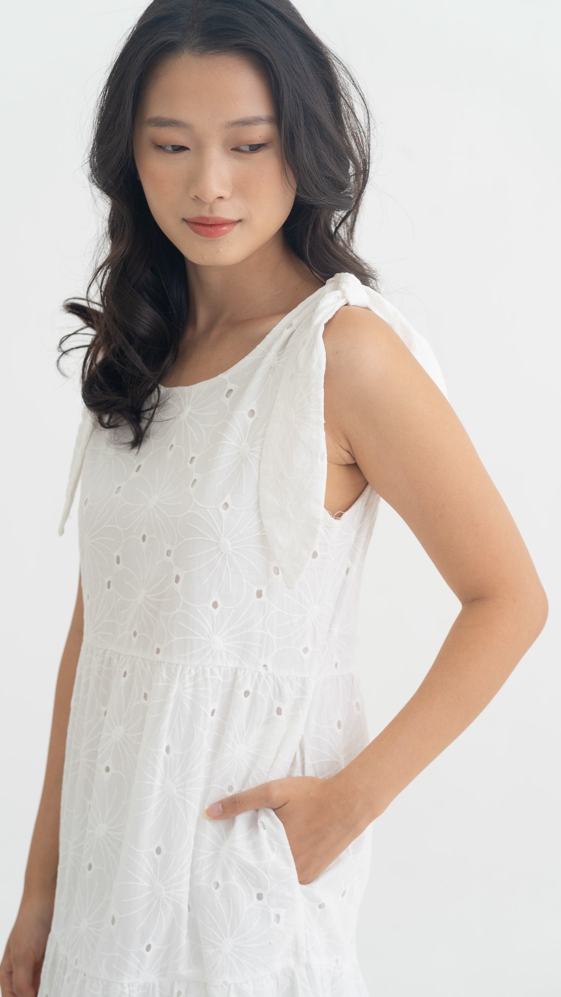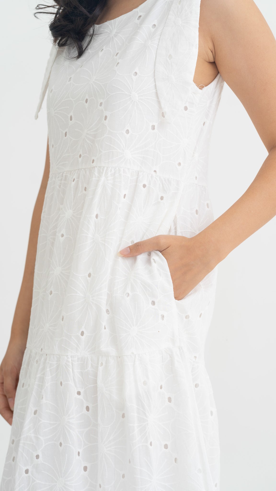• Made with a cotton Broderie material