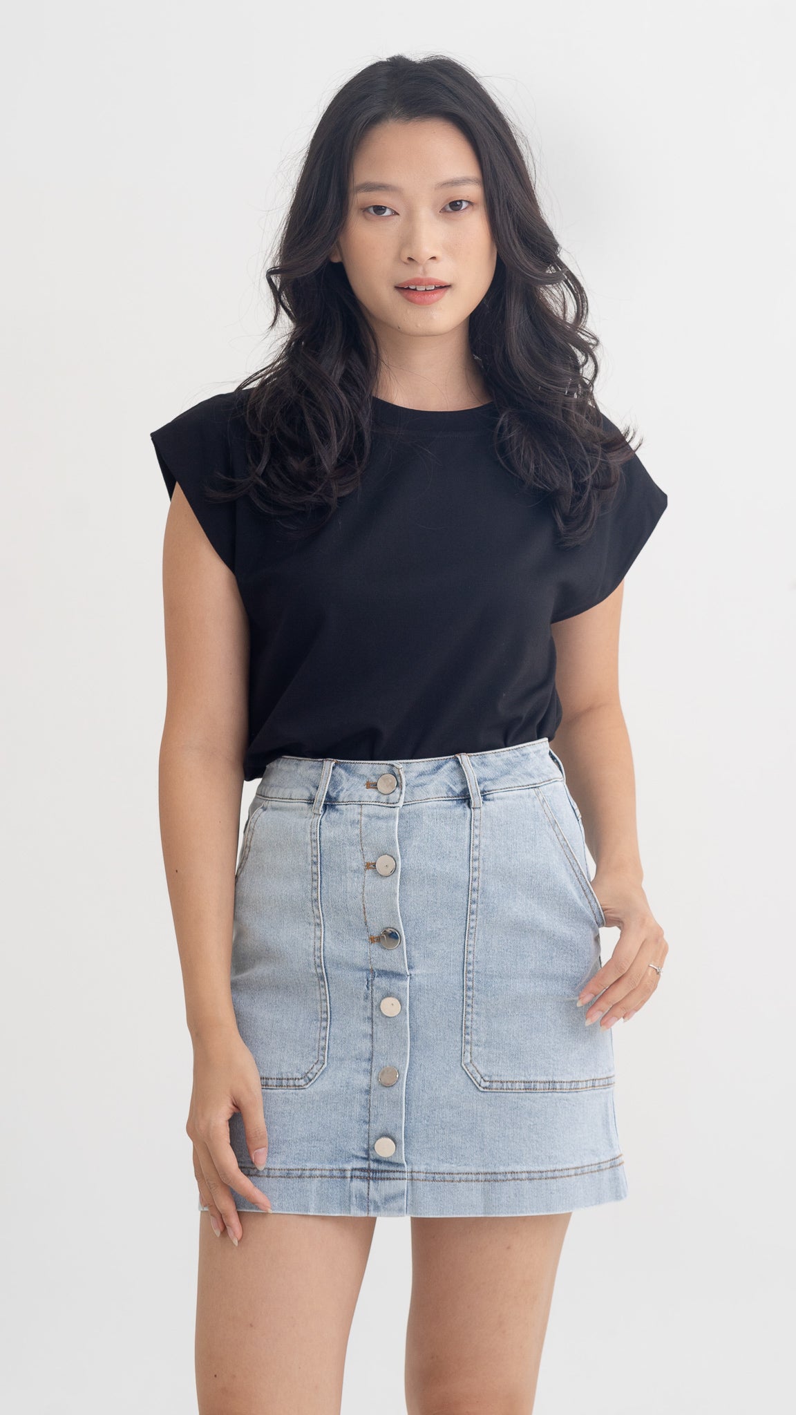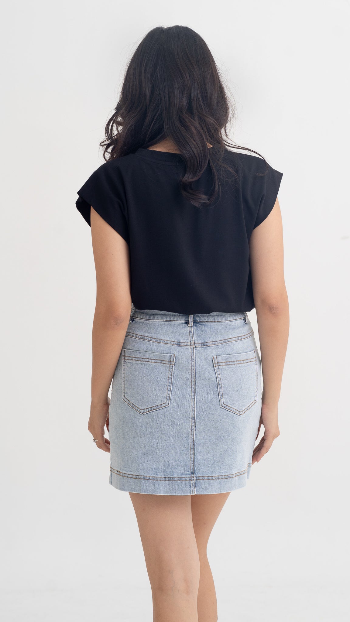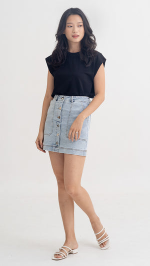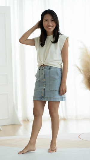Kara Button Denim Skirt in Light Wash [ONLINE ONLY]