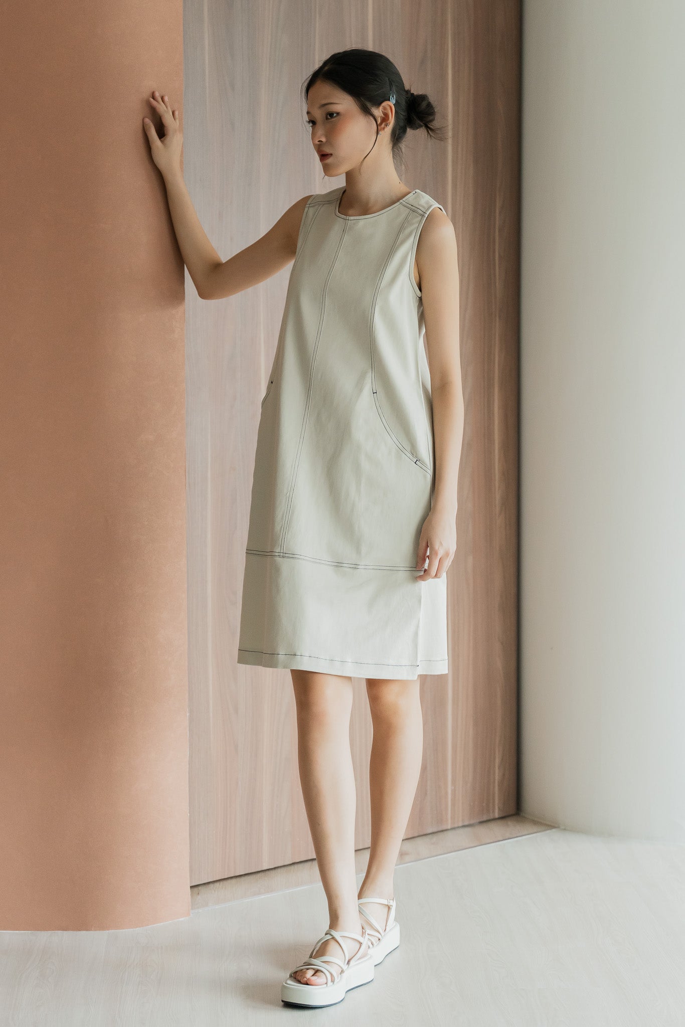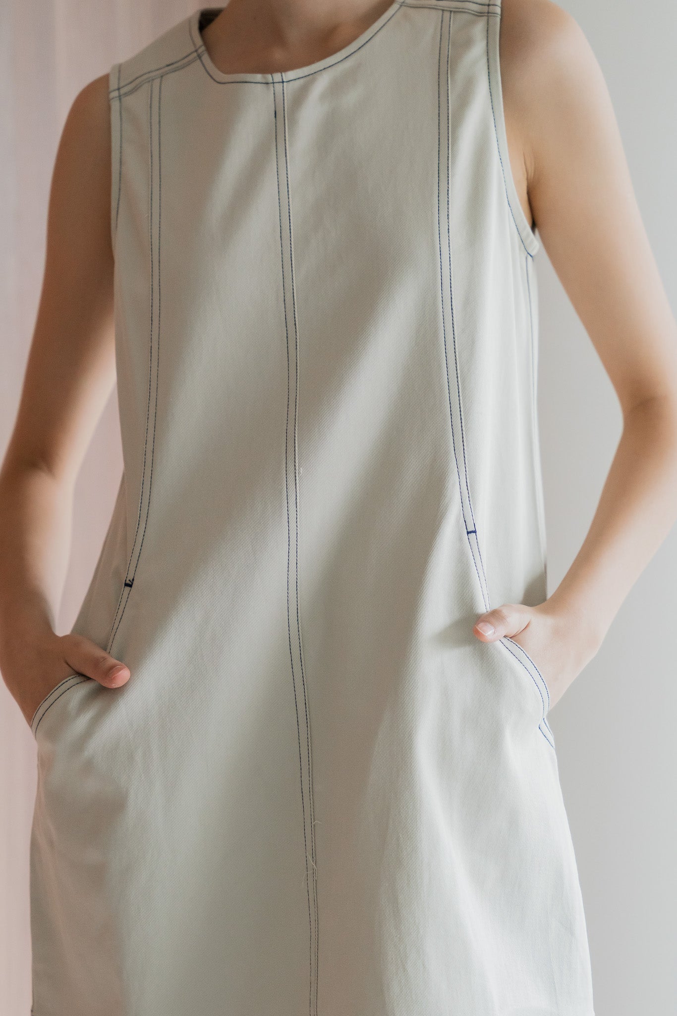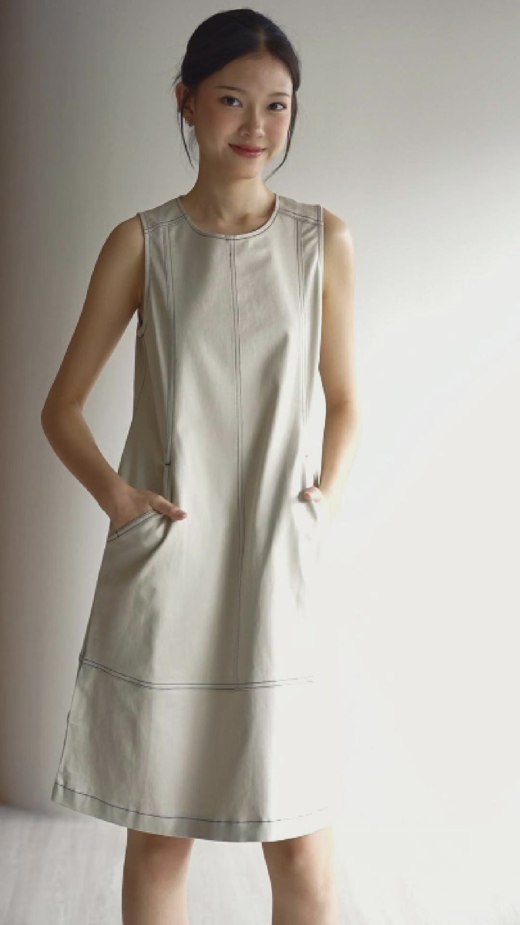 Material: TwillLining: Not lined and not sheerOpening: Concealed zip on the backPockets: Functional pockets on the frontOther features: Contrasting stitch detailColours: Navy and BeigeMeasurements (in inches)Model is 168cm, UK 4-6 and wears size S