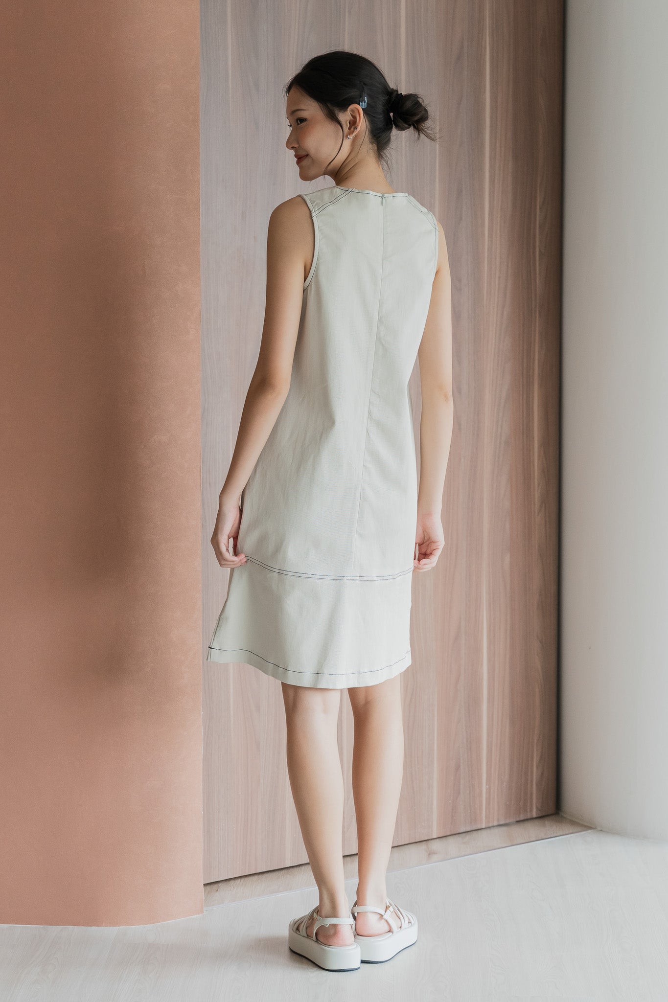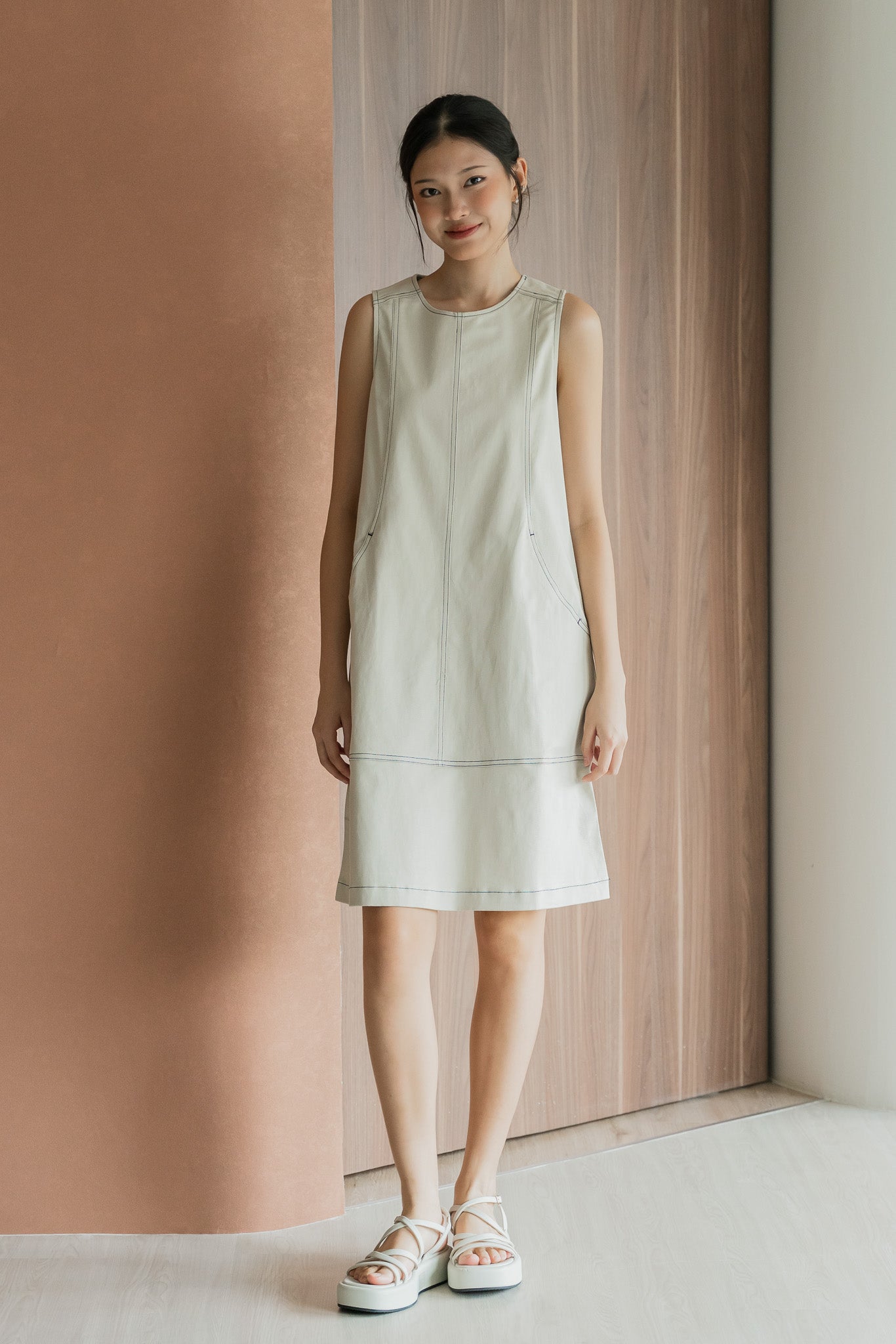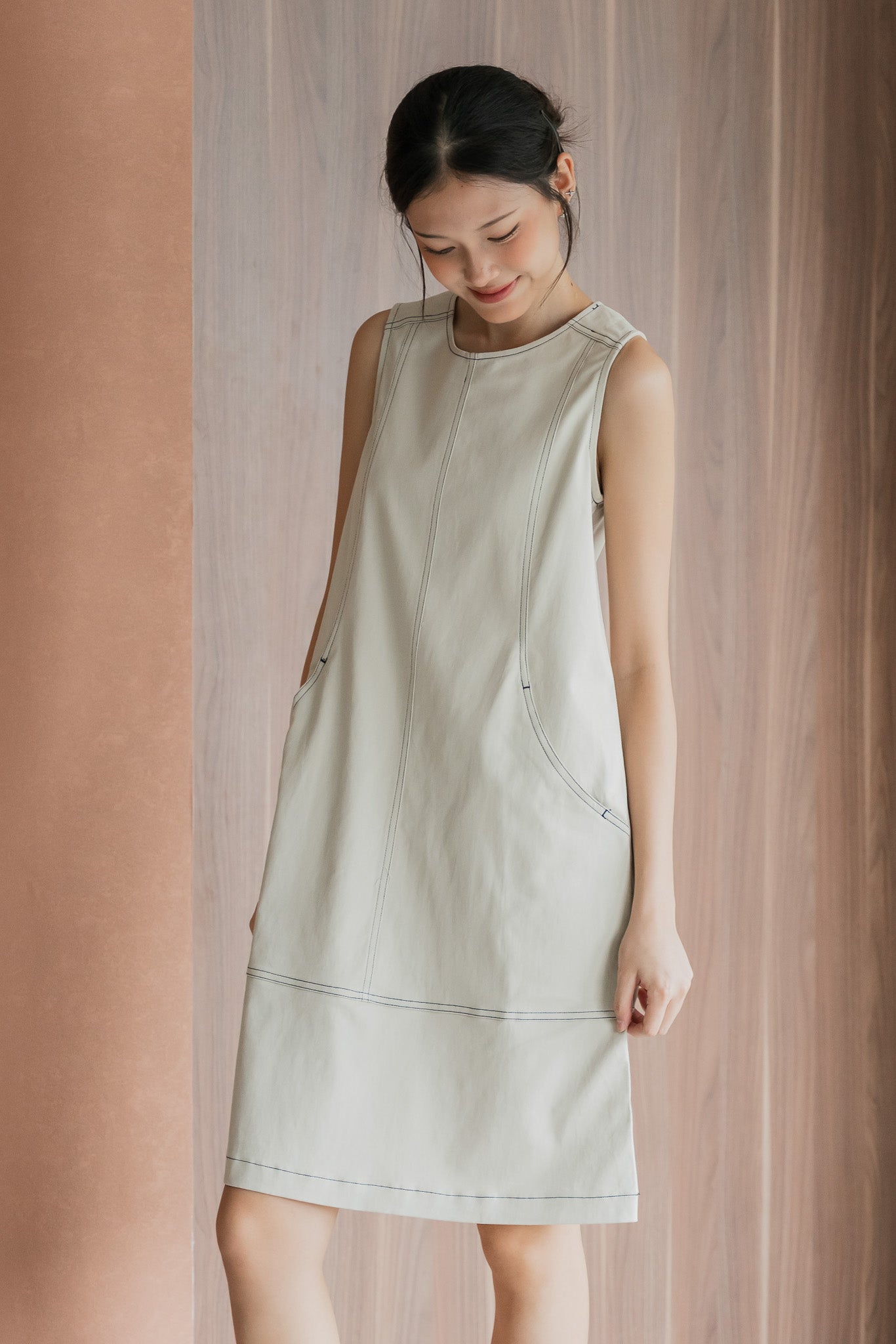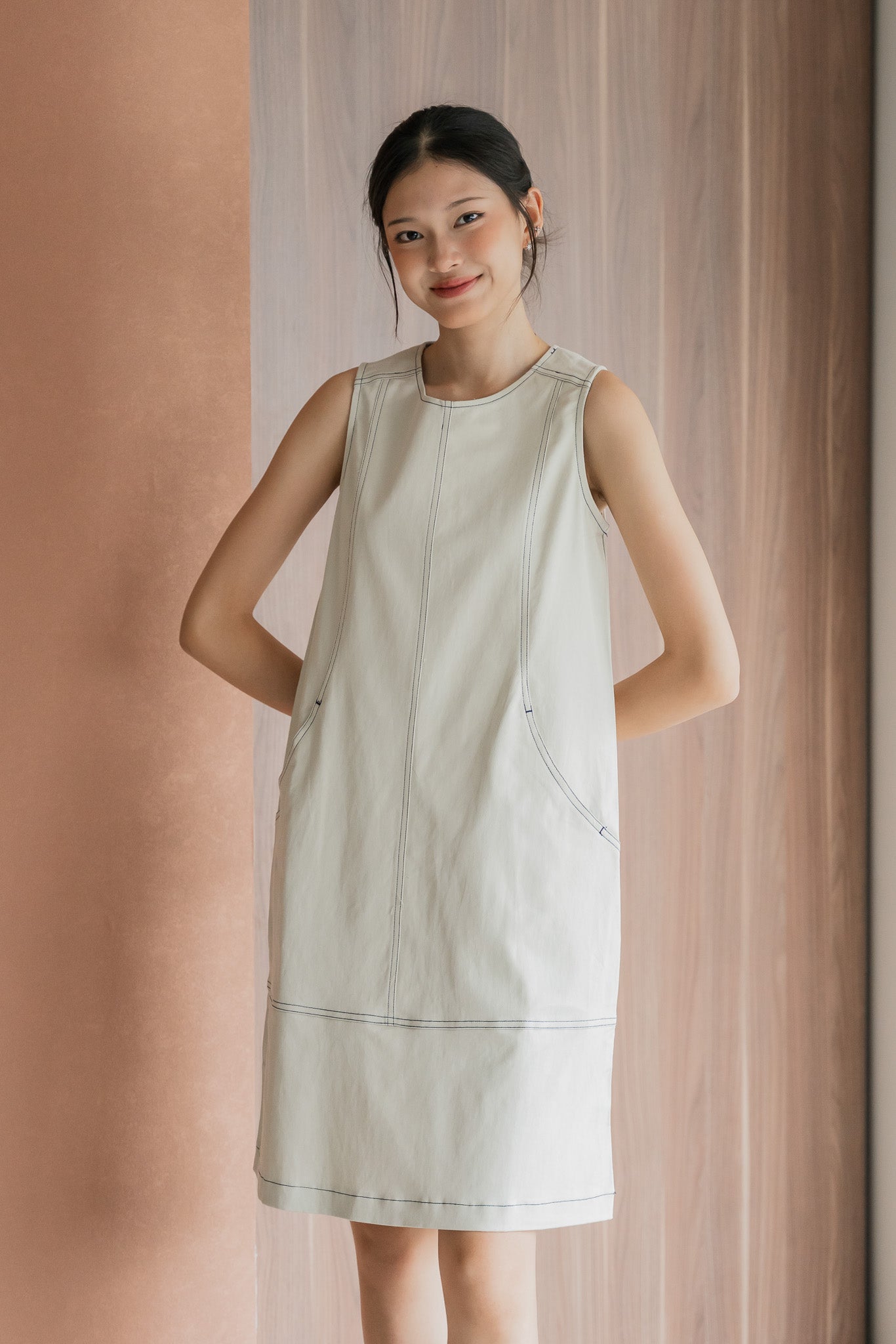 Material: TwillLining: Not lined and not sheerOpening: Concealed zip on the backPockets: Functional pockets on the frontOther features: Contrasting stitch detailColours: Navy and BeigeMeasurements (in inches)Model is 168cm, UK 4-6 and wears size S