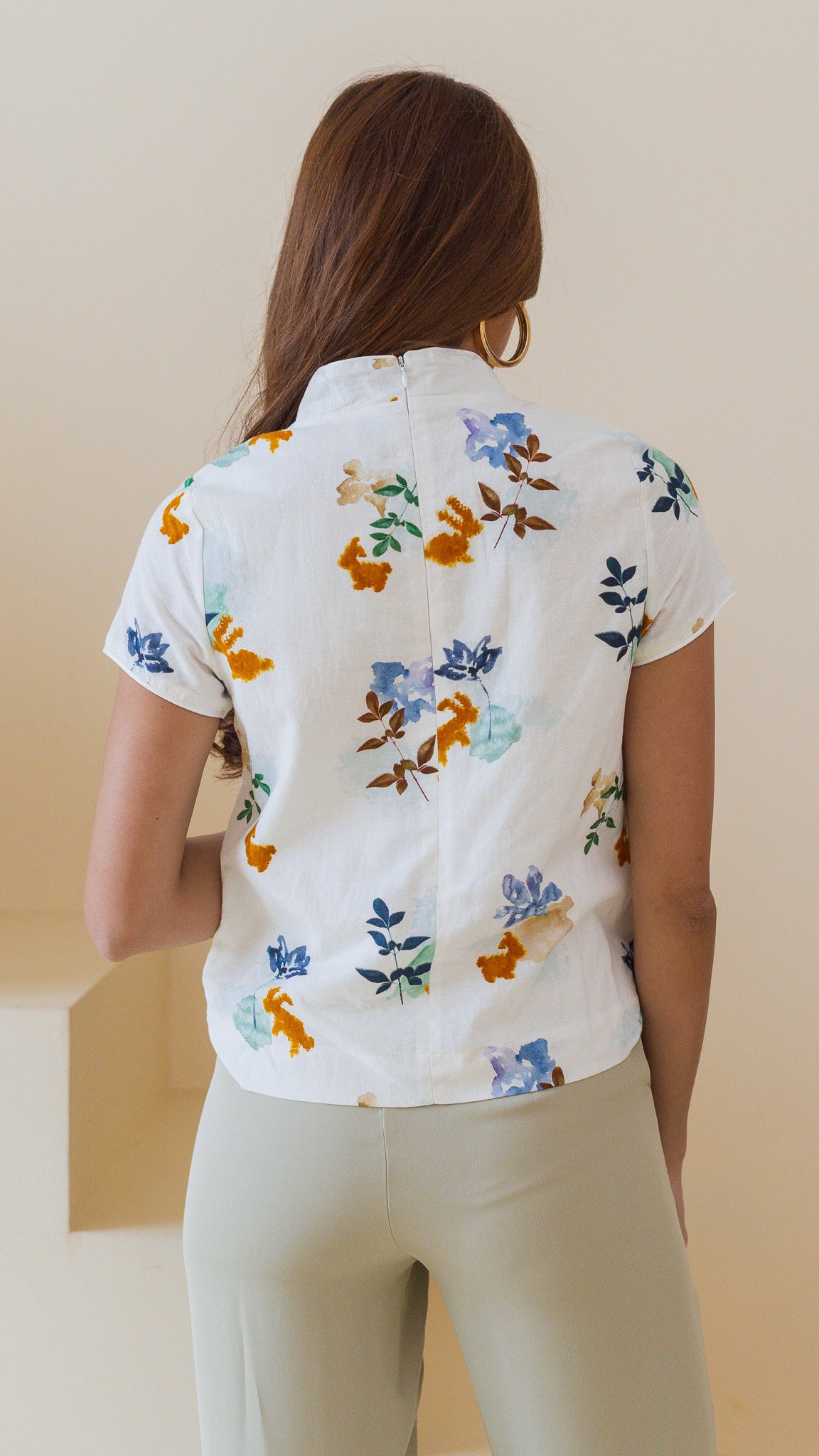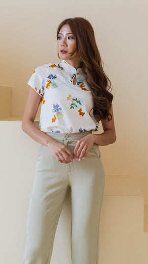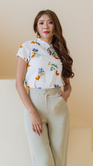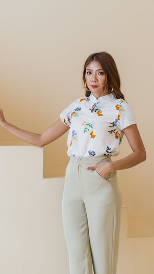 Leaps & Bounds Sleeved Cheongsam Linen Blouse in White