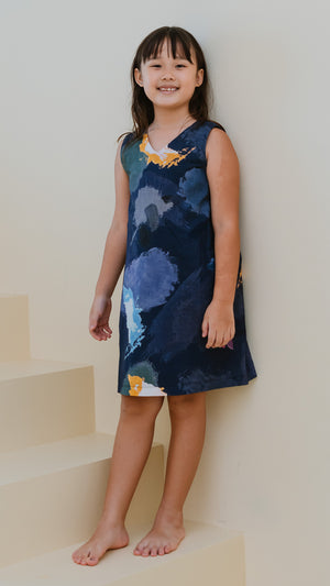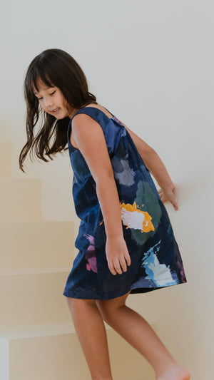 Life On A Canvas Kids' Linen Dress in Navy [ONLINE ONLY]
