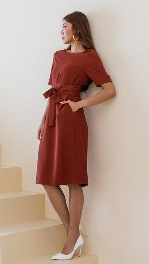 Madelyn Midi Dress with Obi Sash in Rust [ONLINE ONLY]