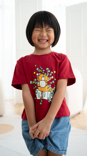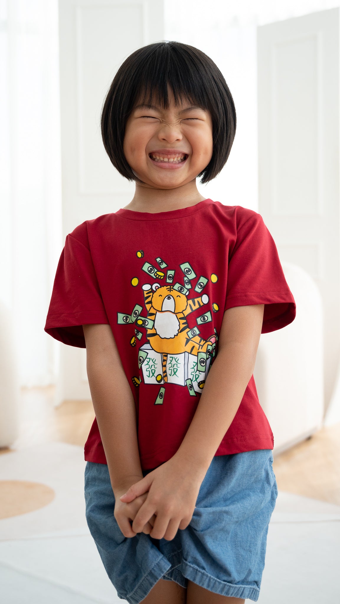 Mahjong Tiger Kids' Tee in Red [ONLINE ONLY]