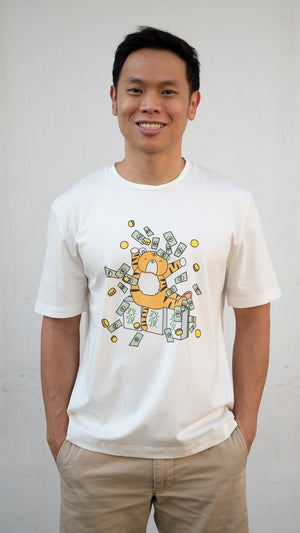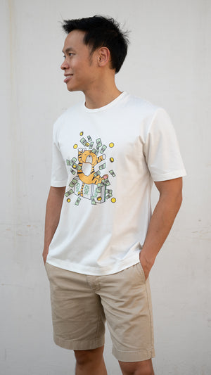 Mahjong Tiger Men's Tee in White [ONLINE ONLY]