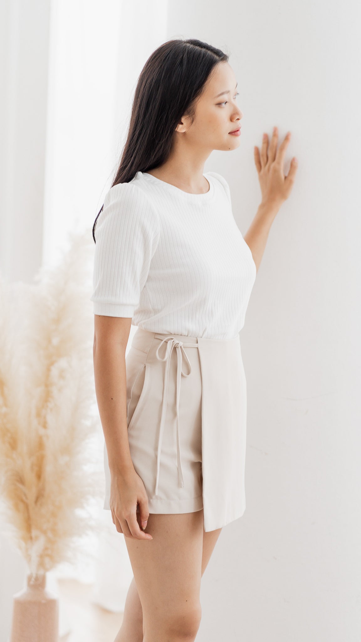 Mason Knot Tie Skorts in Beige [ONLINE ONLY]