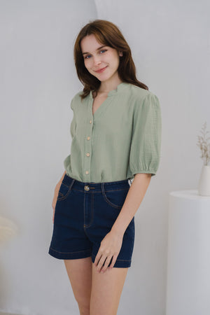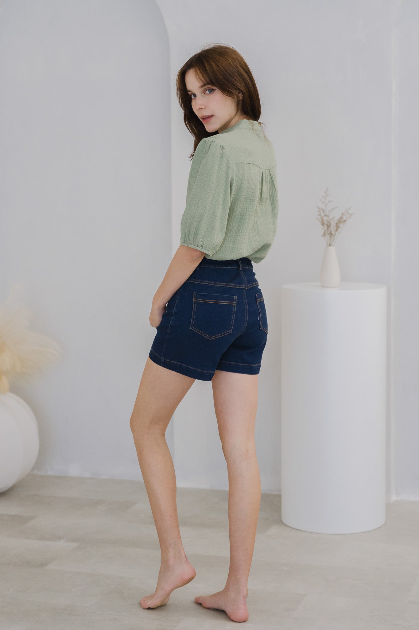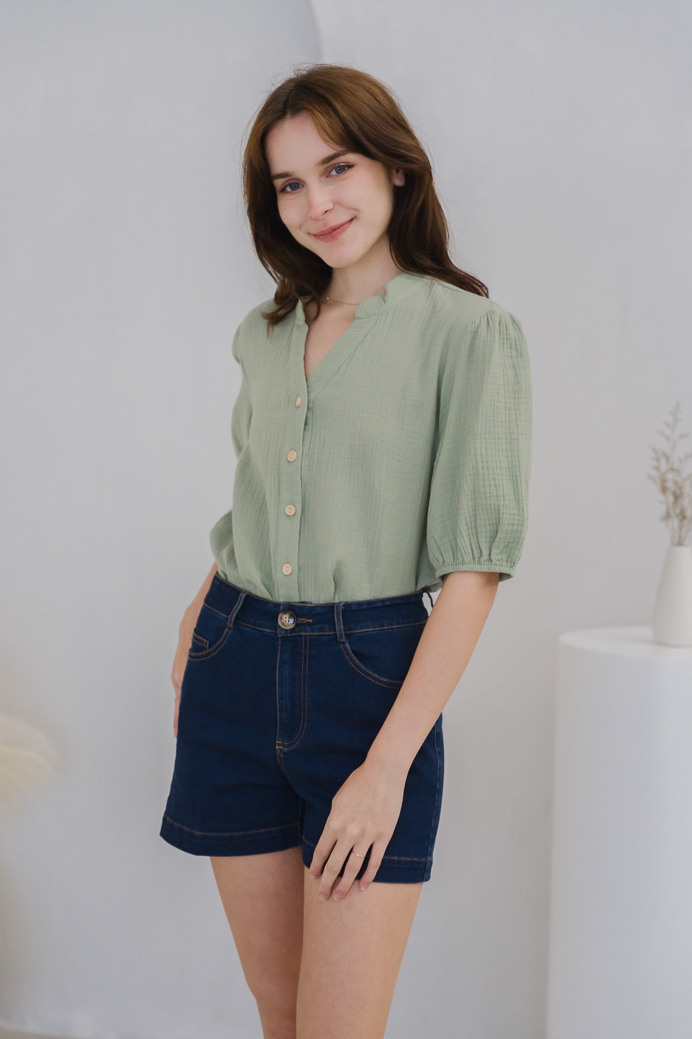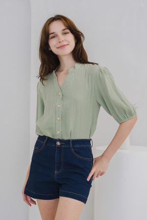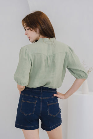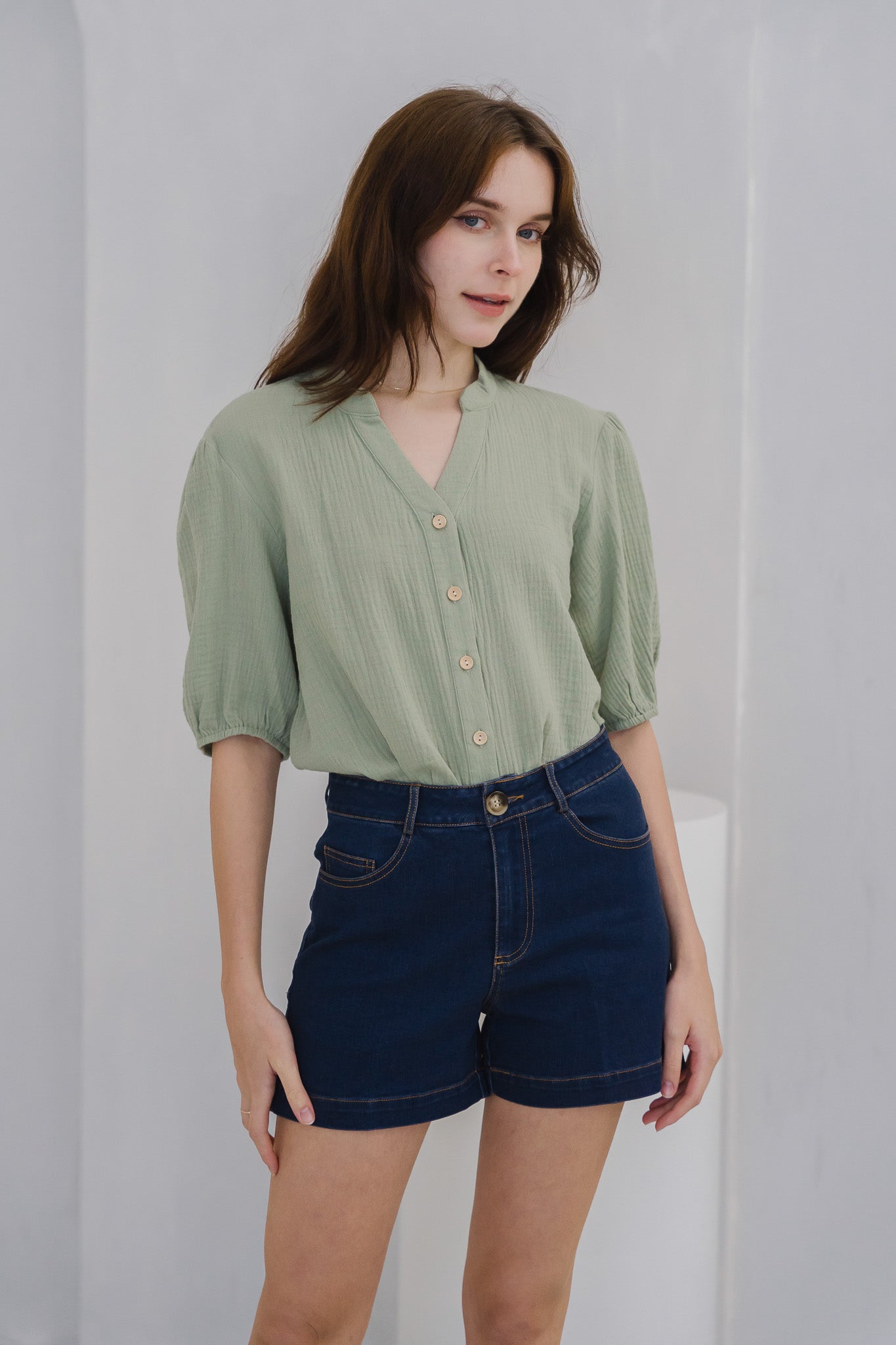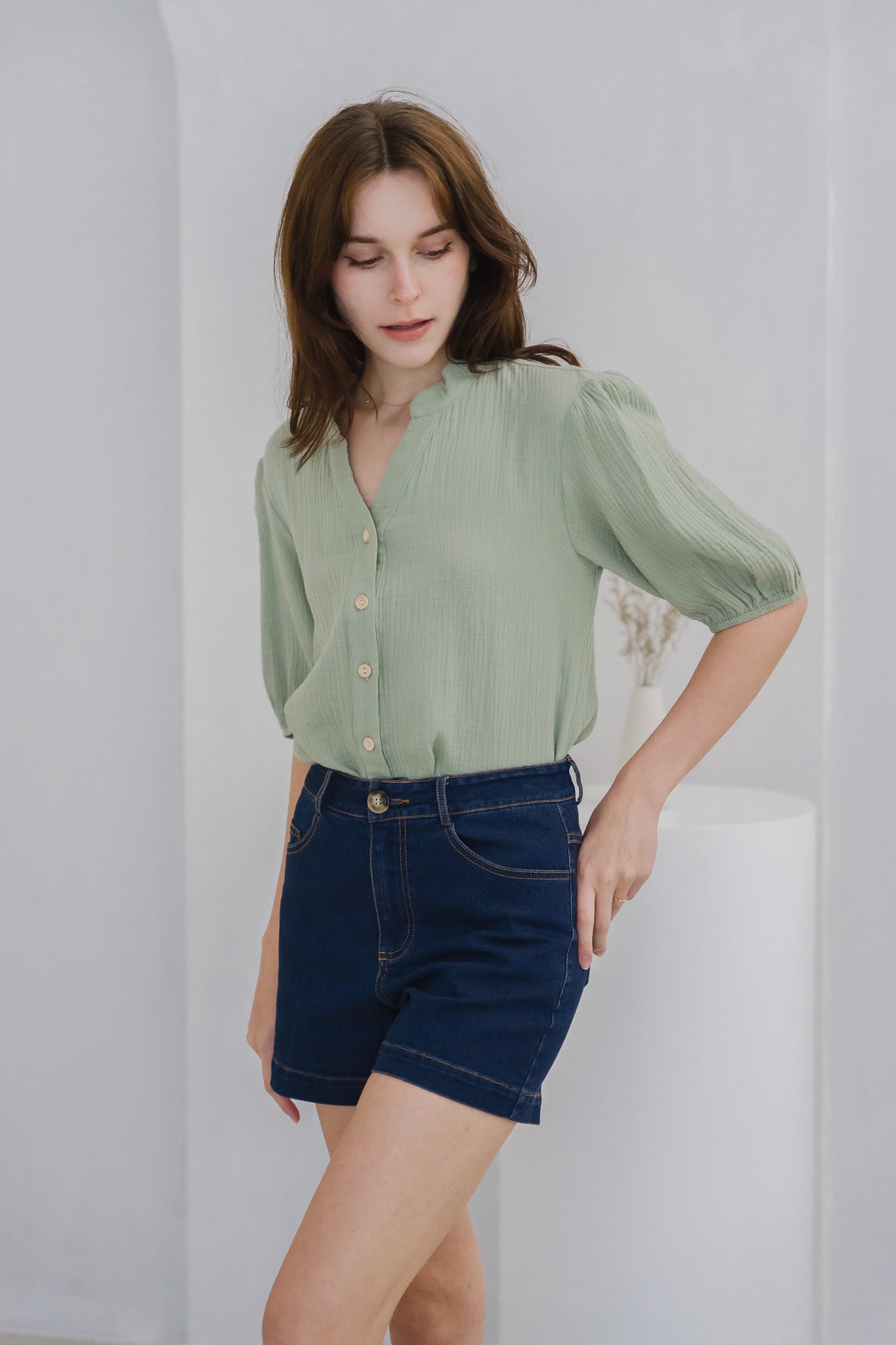 Other features: Puff sleeves, asymmetrical hem line that is slightly longer on the back