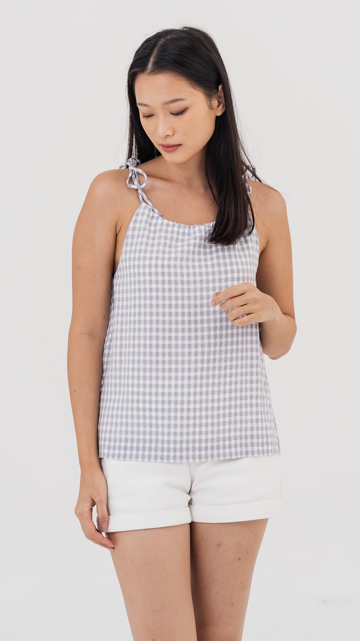 Natalia Halter Gingham Blouse in Lilac [ONLINE ONLY]