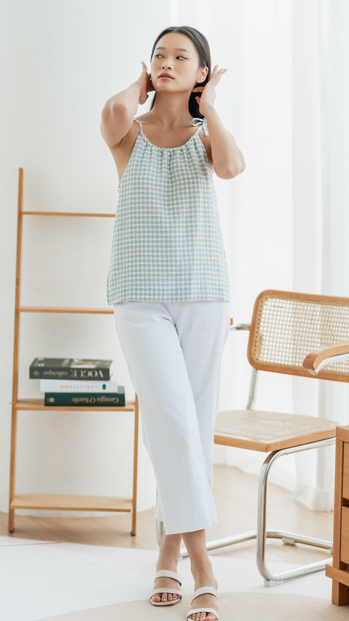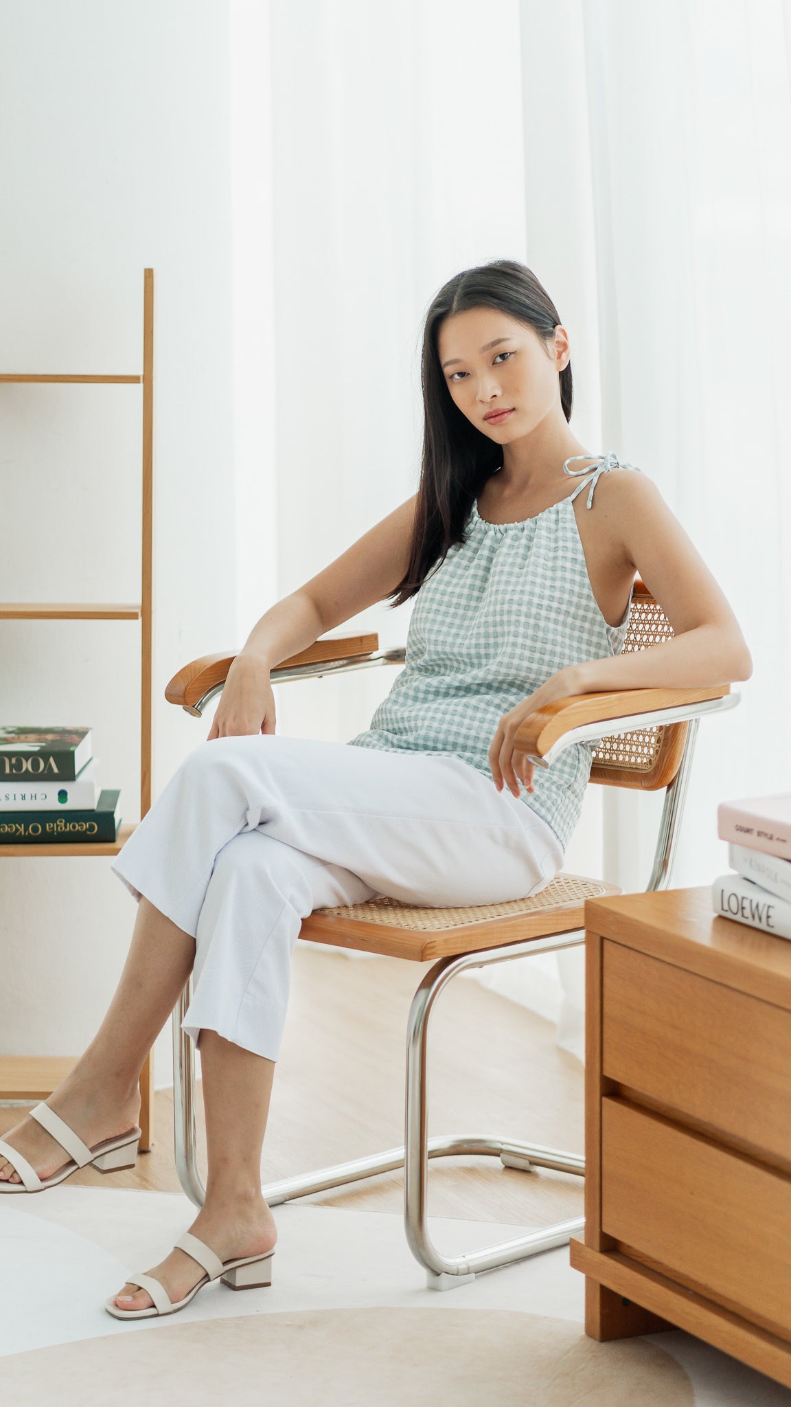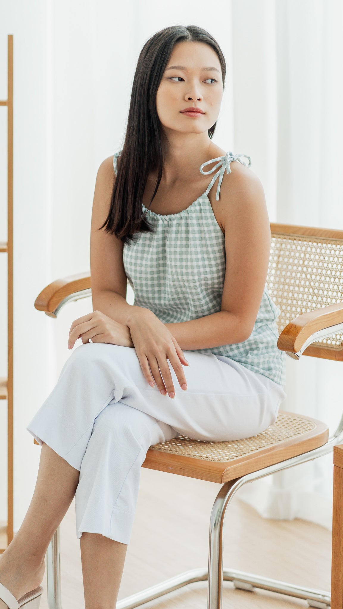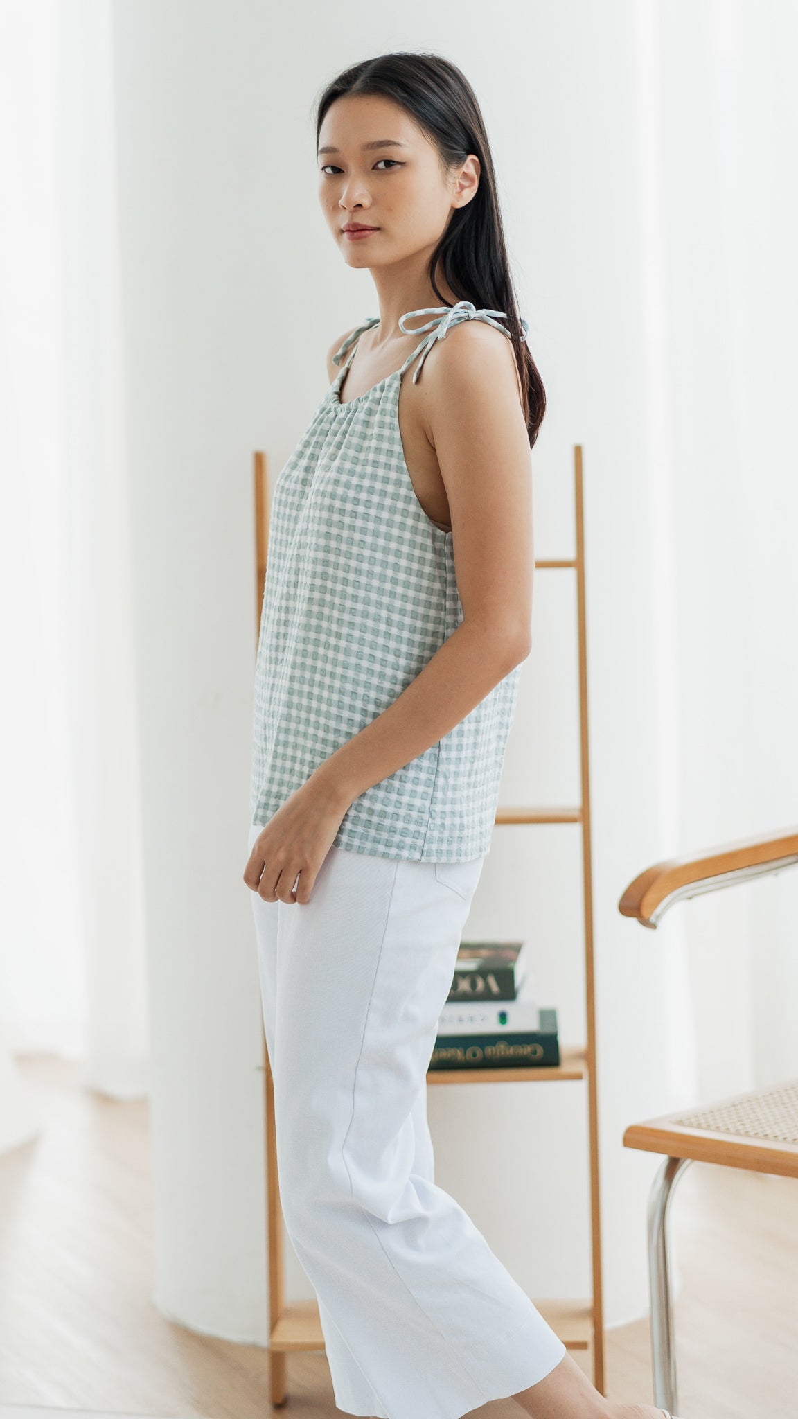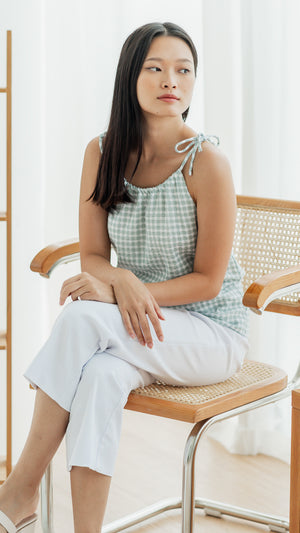 Natalia Halter Gingham Blouse in Sage [ONLINE ONLY]