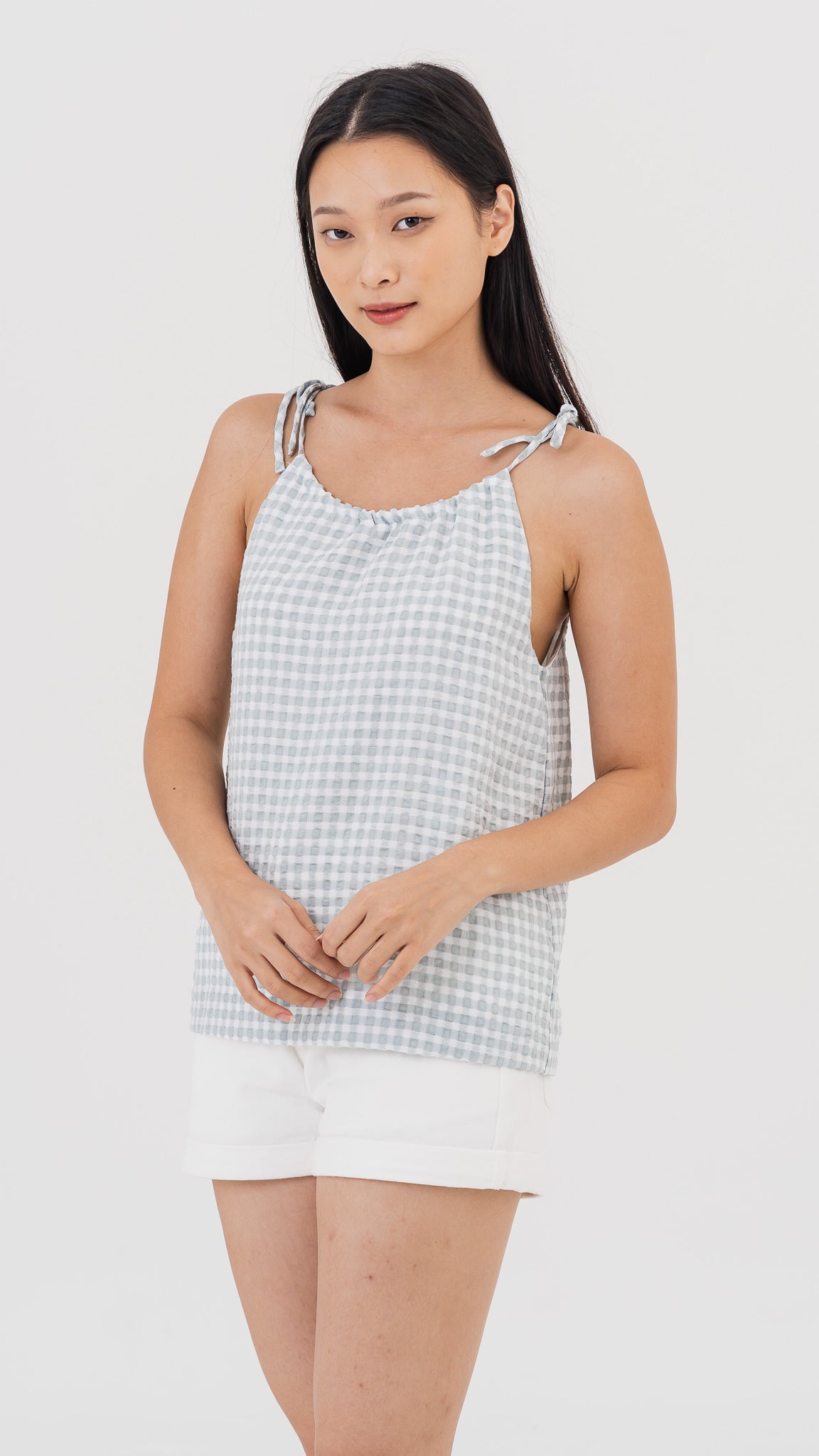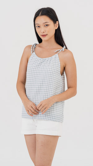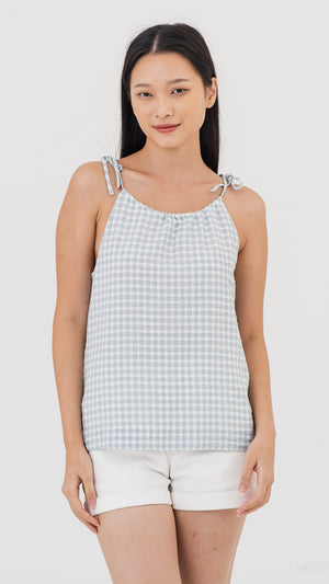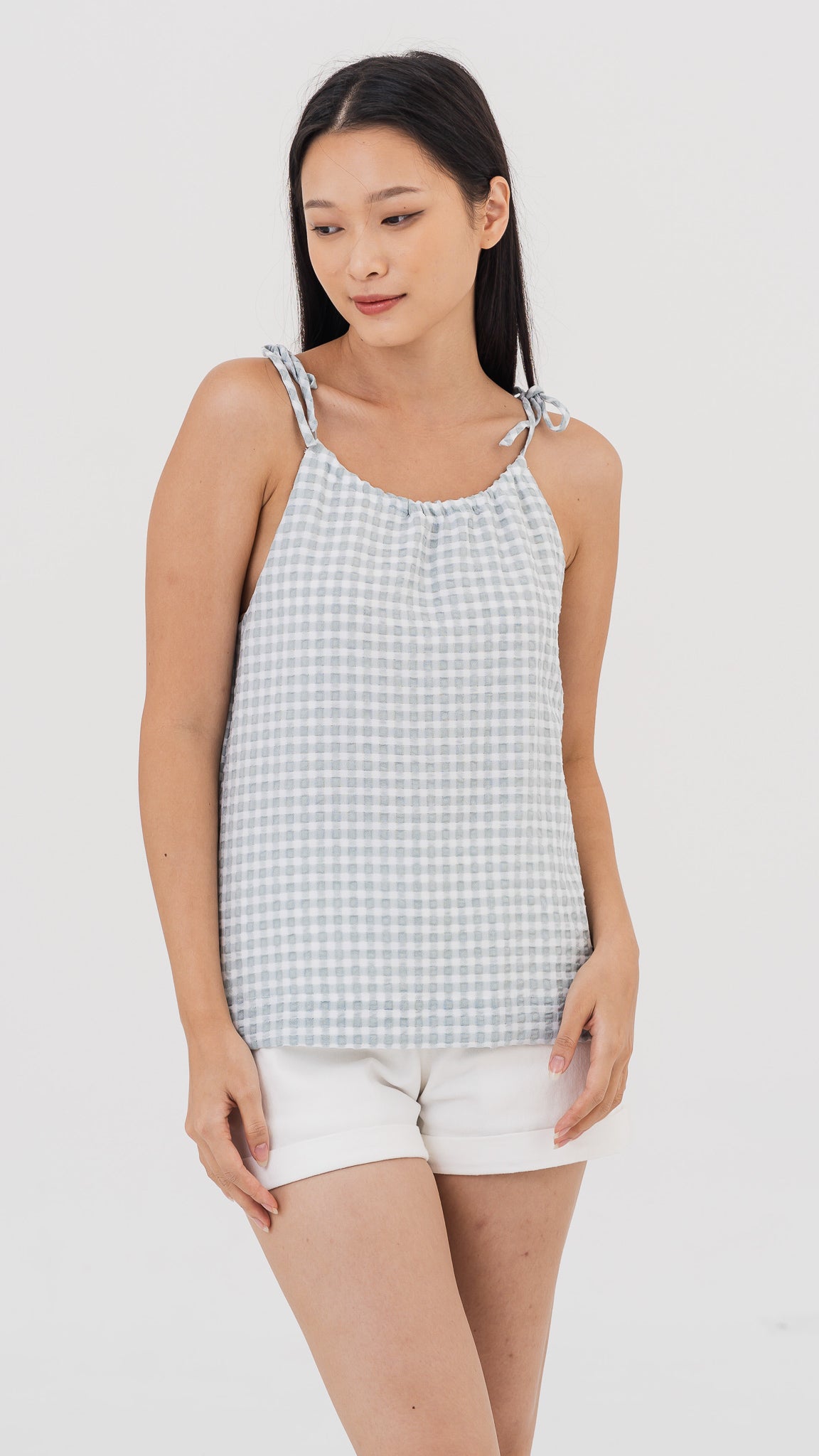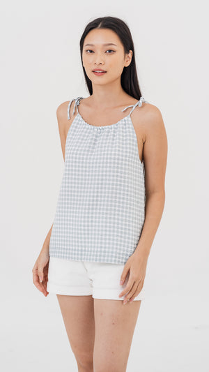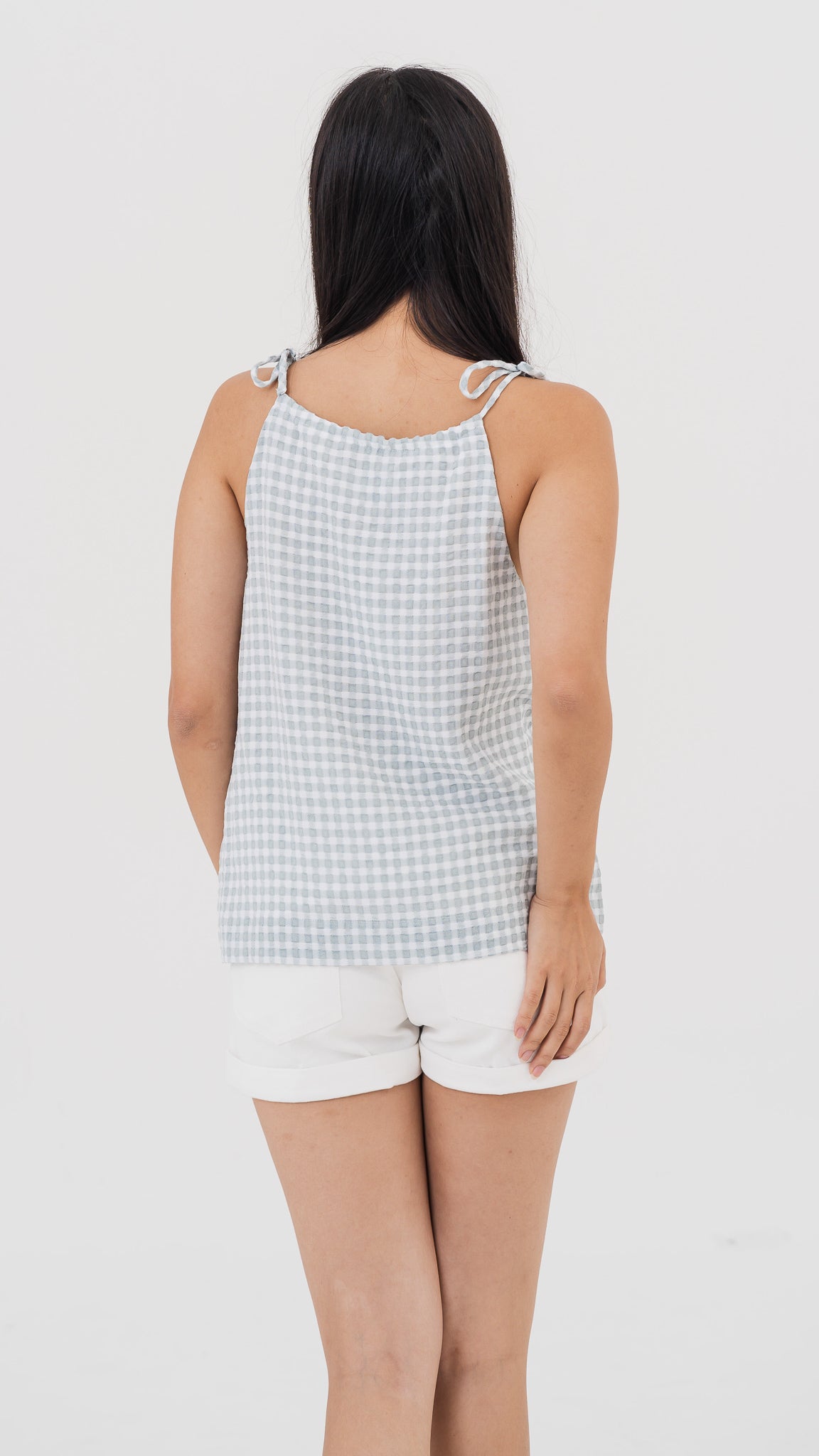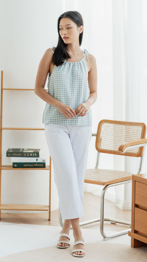 Natalia Halter Gingham Blouse in Sage [ONLINE ONLY]