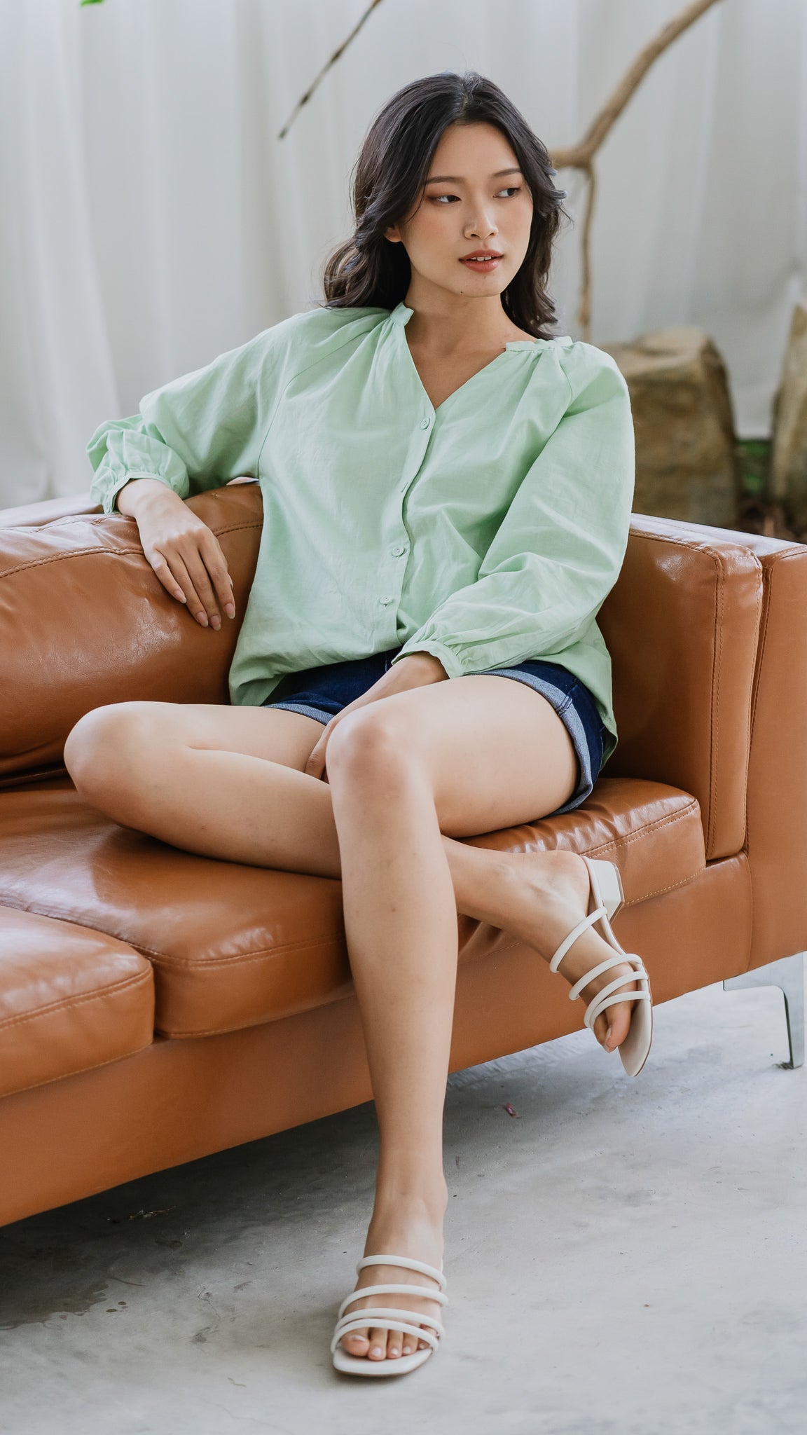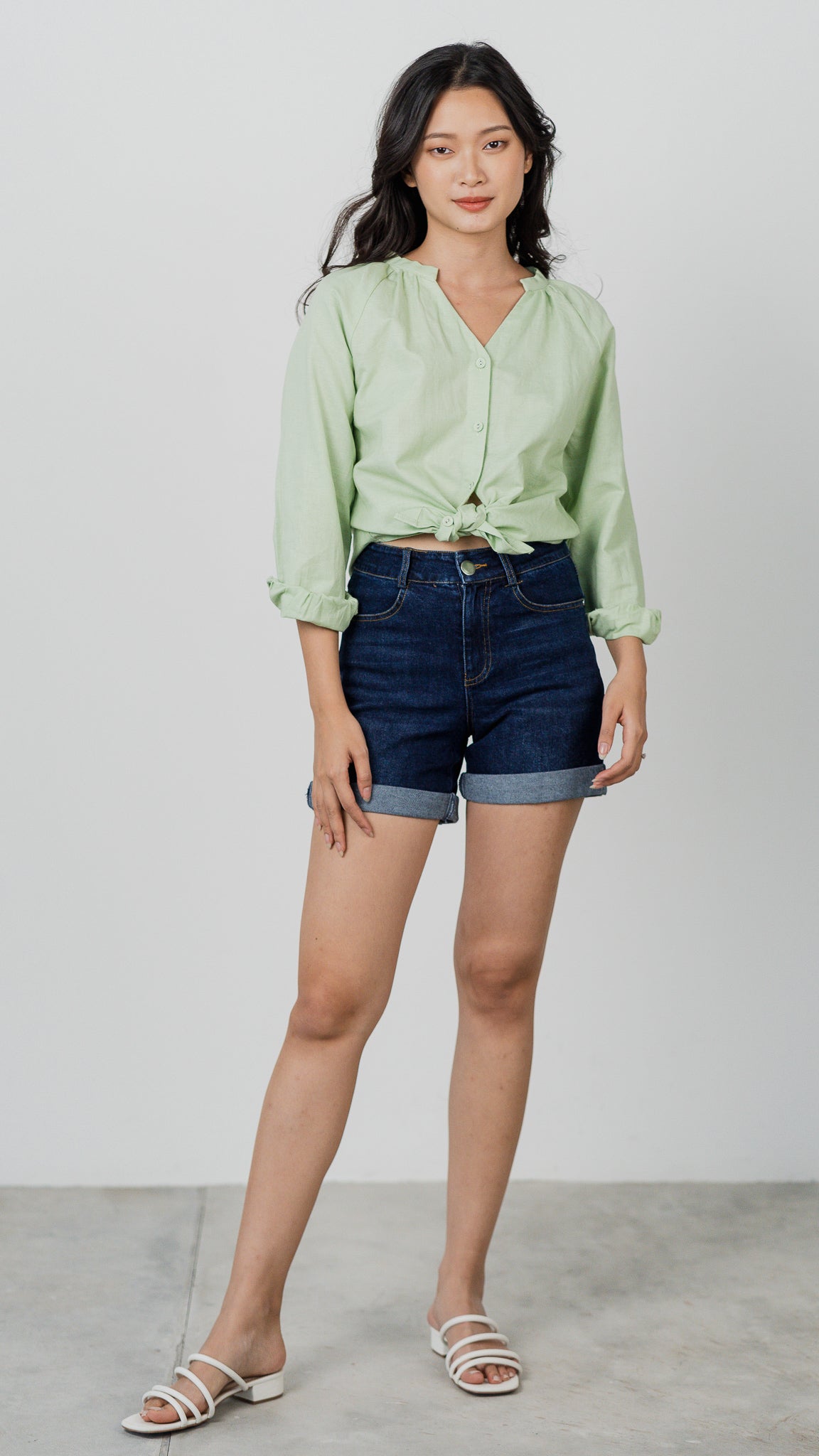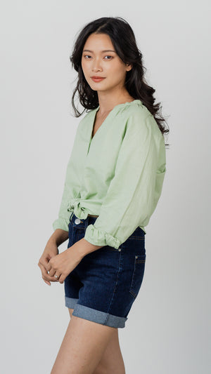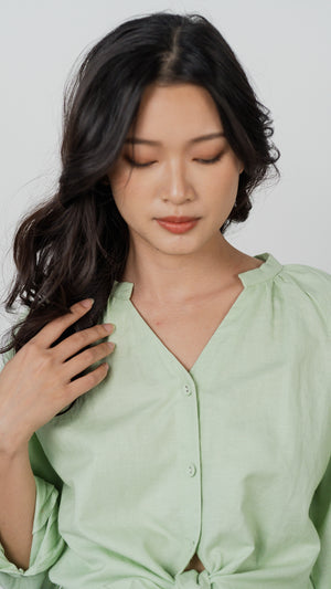 Noah Long Sleeve Linen Shirt in Light Green [ONLINE ONLY]