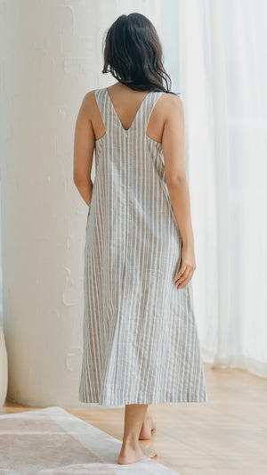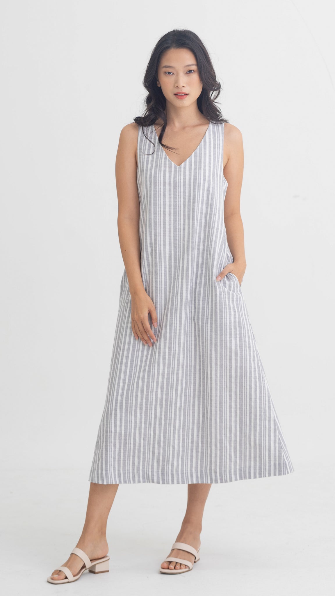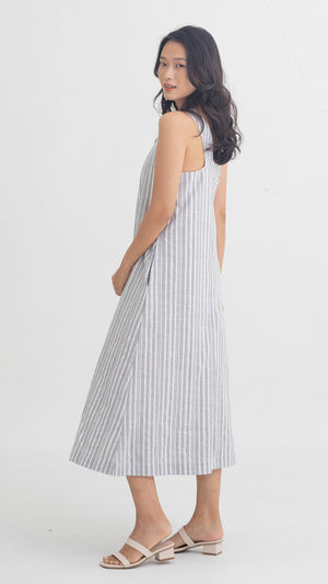 Resort Vibes Striped Midi Dress in Dusty Blue [ONLINE ONLY]