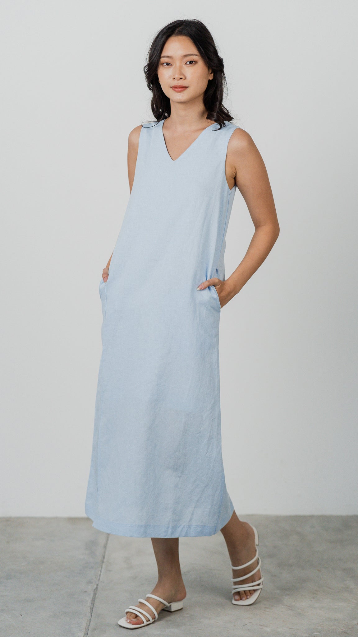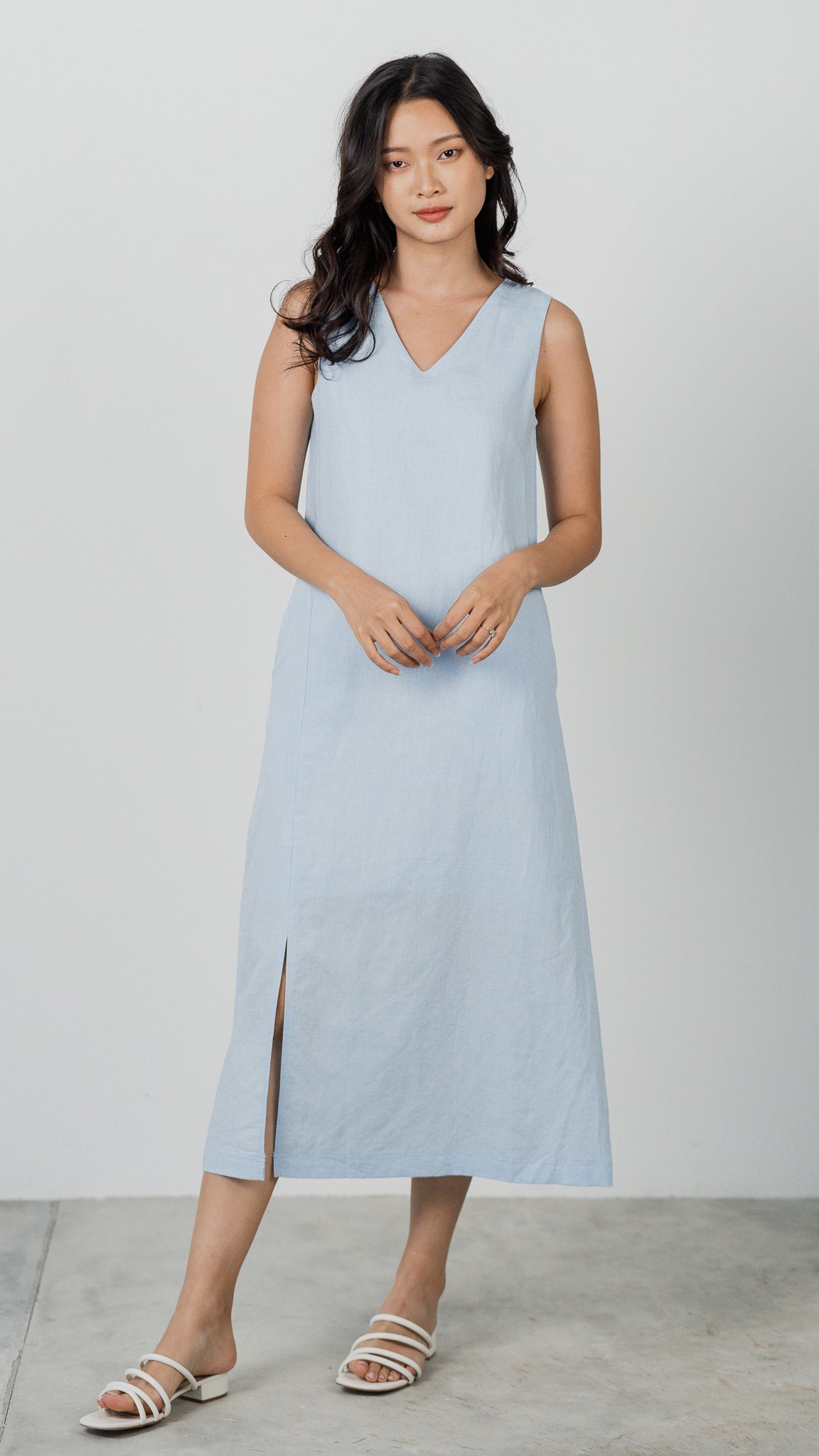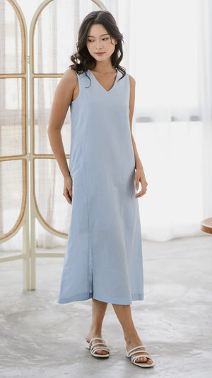 Seasons of Love Linen Dress in Light Blue [ONLINE ONLY]