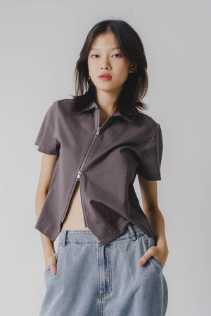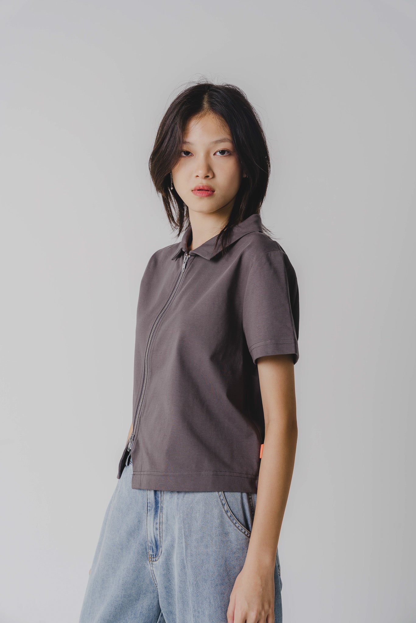 Material: Cotton Jersey with slight stretchLining: Not lined and not sheerOpening: Two-direction YKK Zipper on the frontOther features: Asymmetrical look and hem lineColours: LIGHT GREY and DARK GREYMeasurements (in inches)Model is 168cm, UK 4-6 and wears size S