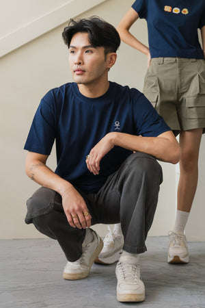 Material: Cotton JerseyLining: Not lined and not sheerOpening: Slip onOther features: Smiley logo embroidery on frontColours: NAVY and LIGHT GRAYMeasurements (in inches)Model is 175cm and wears size L