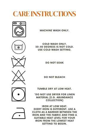 Do not soak, bleach, or use high temperatures for washing and drying.