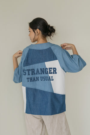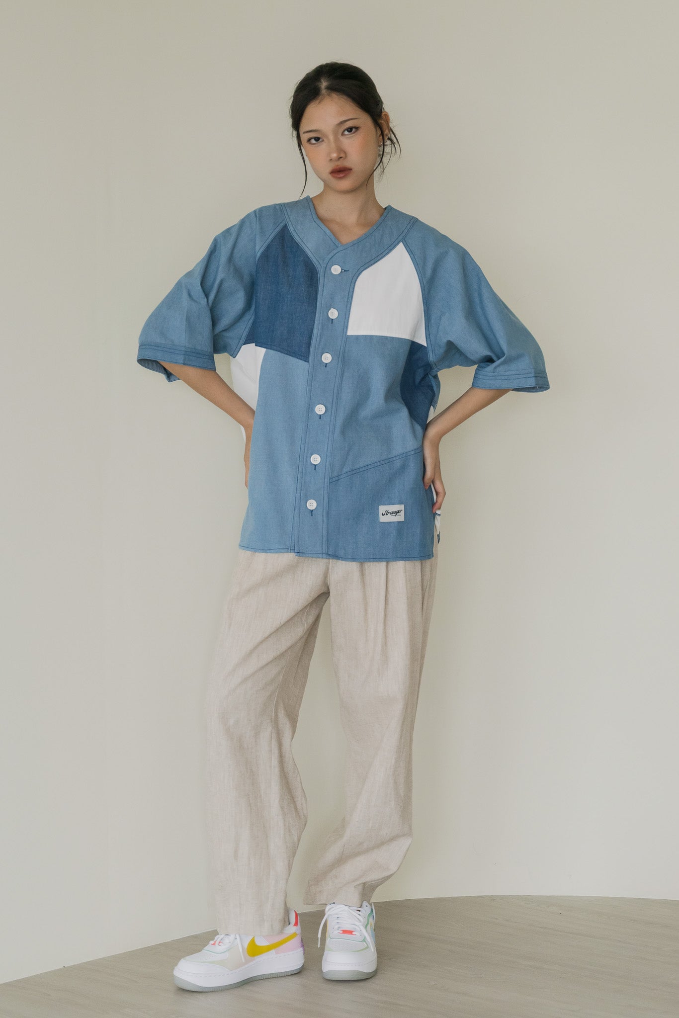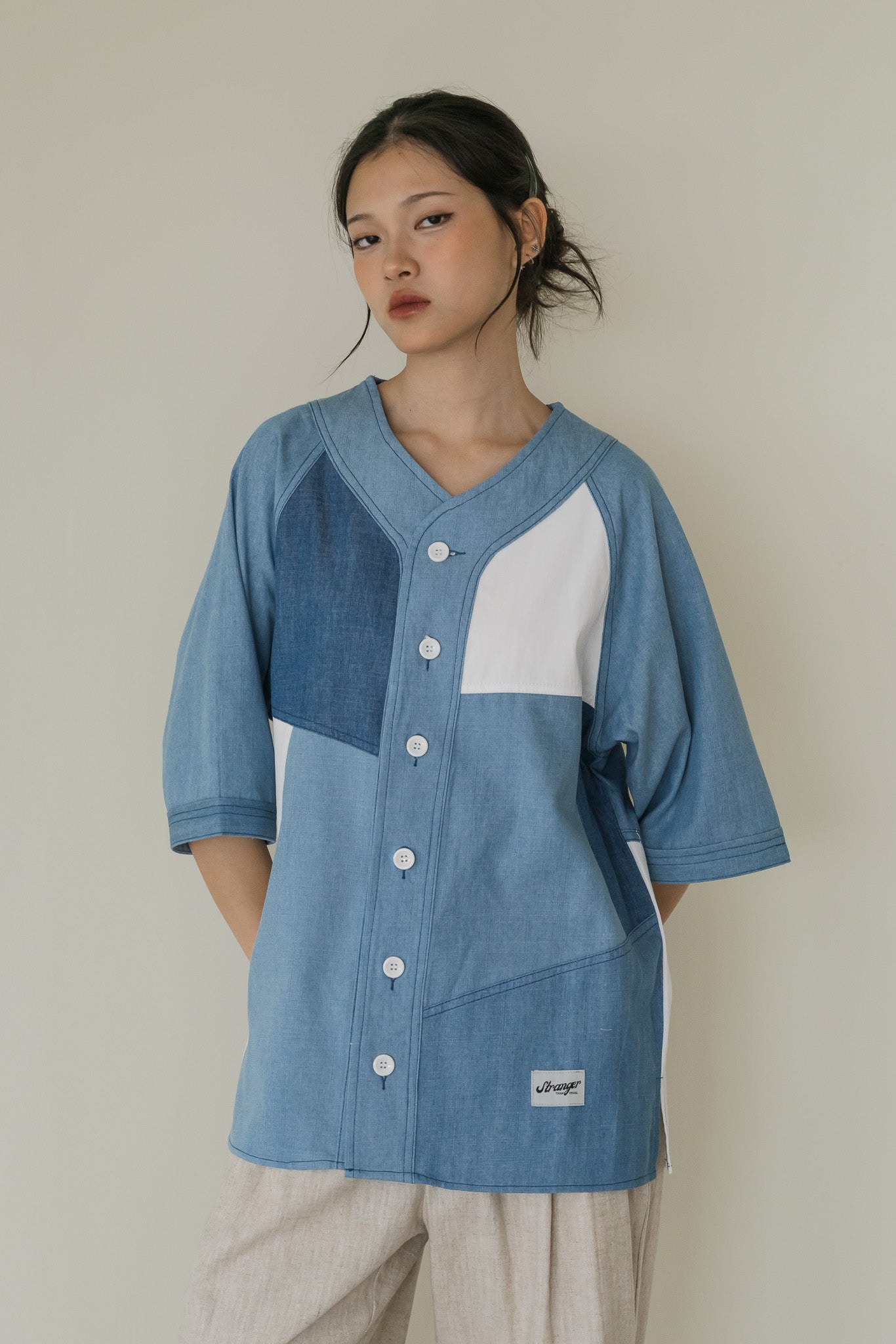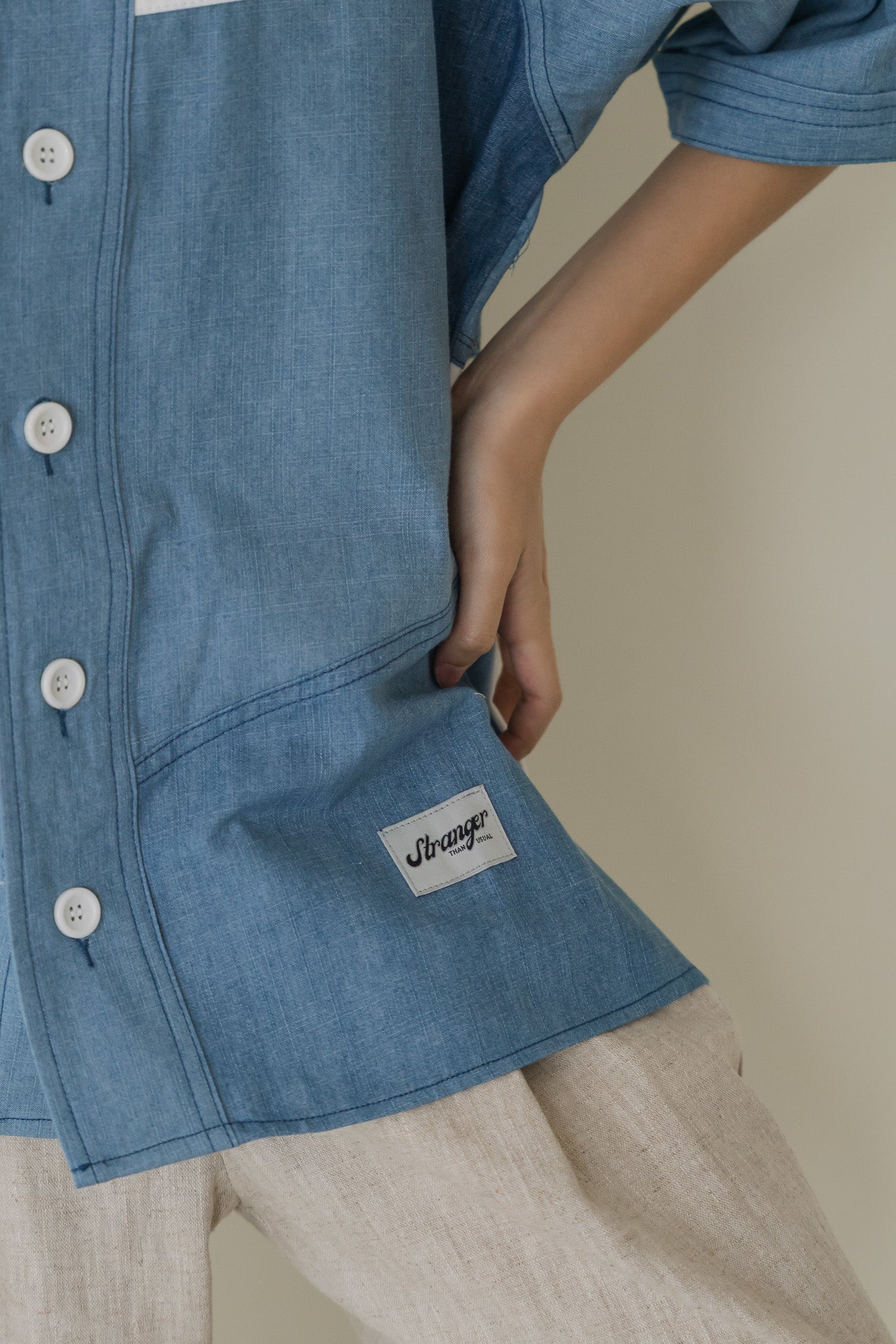 Material: Lightweight DenimLining: Not lined and not sheerOpening: Front buttonsOther features: Patchwork design and stencil logo on the backColours: One Colour Only*Please Note:The embroidered slogan on the back of this item is intentionally designed with a frayed, rugged finish, which may become more pronounced after washing. This is part of the garment’s design and character, and not a defect. Kindly refer to the last picture.Measurements (in inches)Model is 168cm, UK 4-6 and wears size S for an oversized fit
