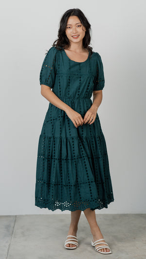 Sweet Disposition Broderie Dress in Forest [ONLINE ONLY]