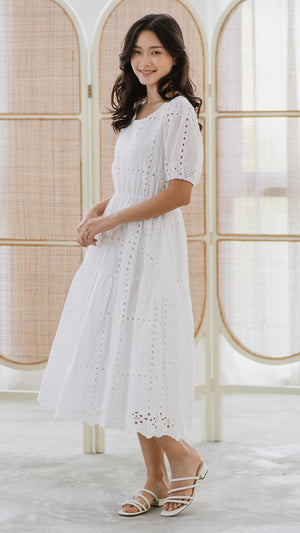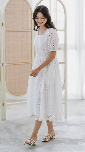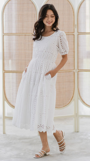 Sweet Disposition Broderie Dress in White [ONLINE ONLY]