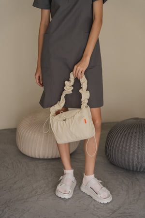 Material: NylonOpening: One direction YKK ZipperPockets: Functional internal pocketsOther features: Adjustable ruched strap and front pocketsColours: PINK, CREAM, ARMY GREEN, NAVY, DARK GREY, LIGHT GREENMeasurements (in inches)Item comes in 1 size only